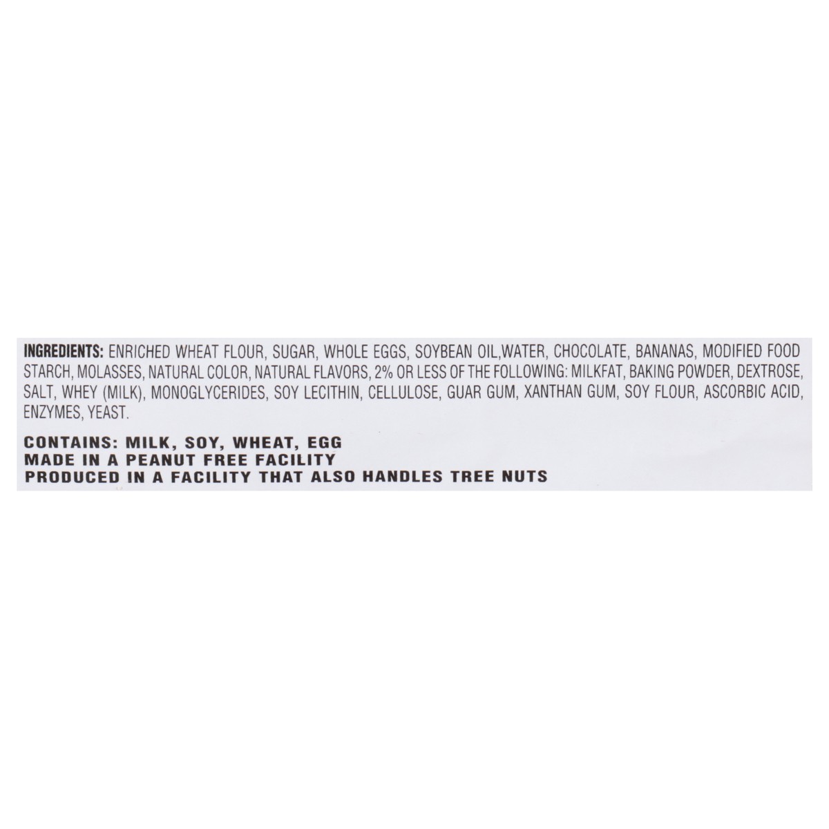Enriched Wheat Flour, Sugar, Whole Eggs, Soybean Oil, Water, Chocolate, Bananas, Modified Food Starch, Molasses, Natural Color, Natural Flavors, 2% or Less of the Following: Milkfat, Baking Powder, De…