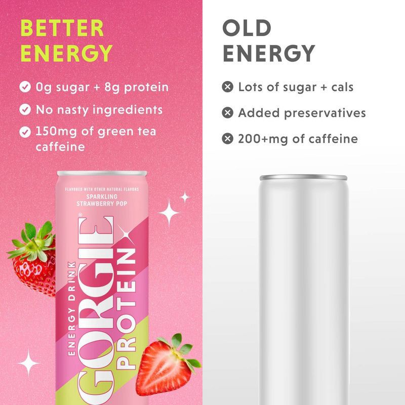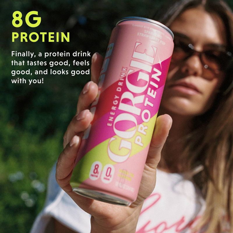 Gorgie Strawberry Pop Sparkling Protein Energy Drink - Sugar Free, 8g Protein - 12 fl oz Can