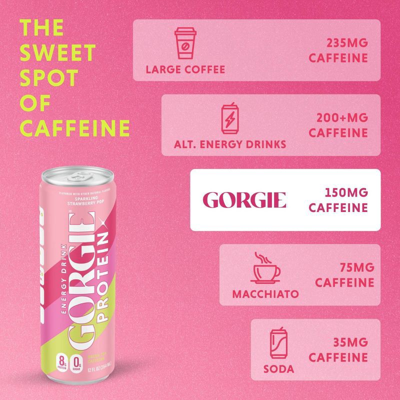 Gorgie Strawberry Pop Protein Energy Drink is the sparkling energy drink that does more. With 8g of protein, 150mg of natural green tea caffeine, zero sugar, and low-calorie, it's designed for those w…