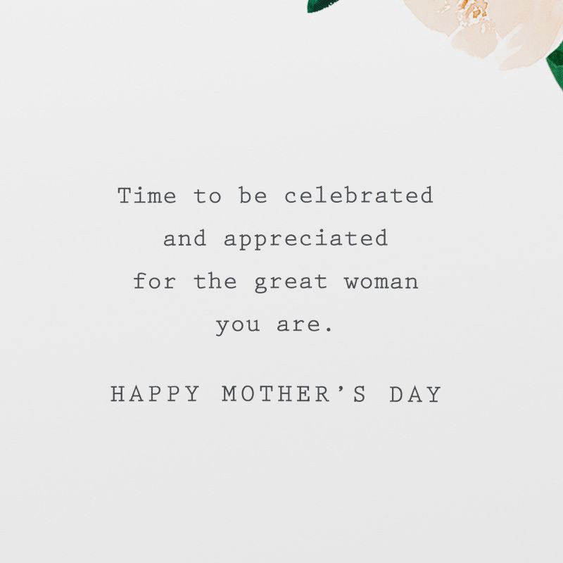 - Inside Message: Happy Mother's DayTime to be celebrated and appreciated for the great woman you are.