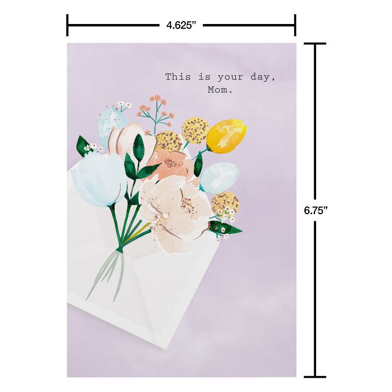 Make Mother's Day memorable with this exquisite floral card, specially designed to echo the grace and beauty of your mom. 'This is your day, Mom,' printed on the front, gently invites you to honor the…