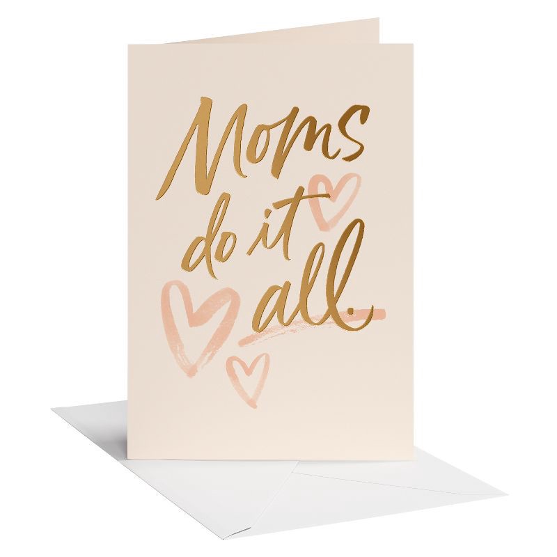 Honor the amazing woman who does it all with this beautifully designed Mother's Day card from American Greetings. Accented with elegant gold foil and subtle pink brushstroke hearts, this card encapsul…