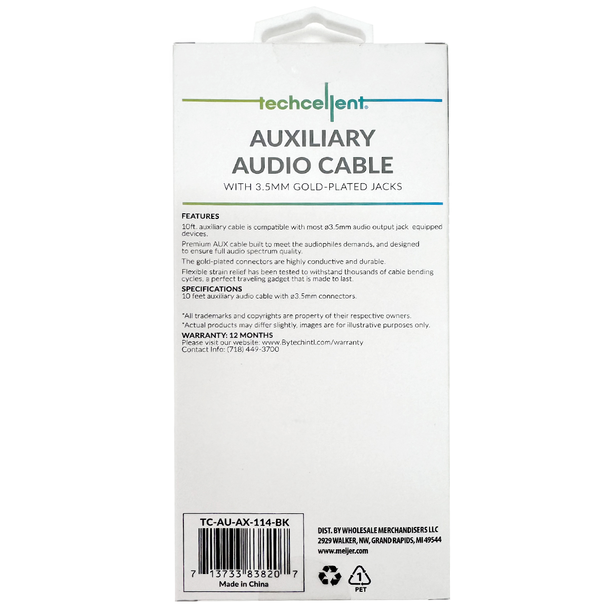 Techcellent 10ft 3.5mm to 3.5mm Audio Jack, Black