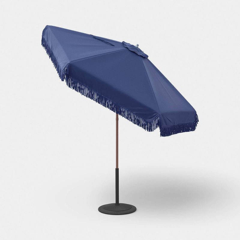4.72"x49.21" Round Fringe Valance Outdoor Patio Umbrella Navy Blue - Threshold™