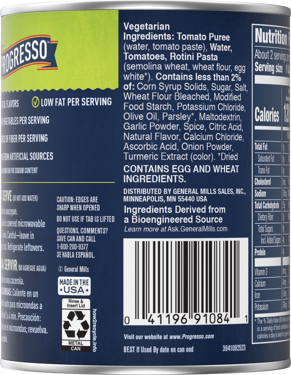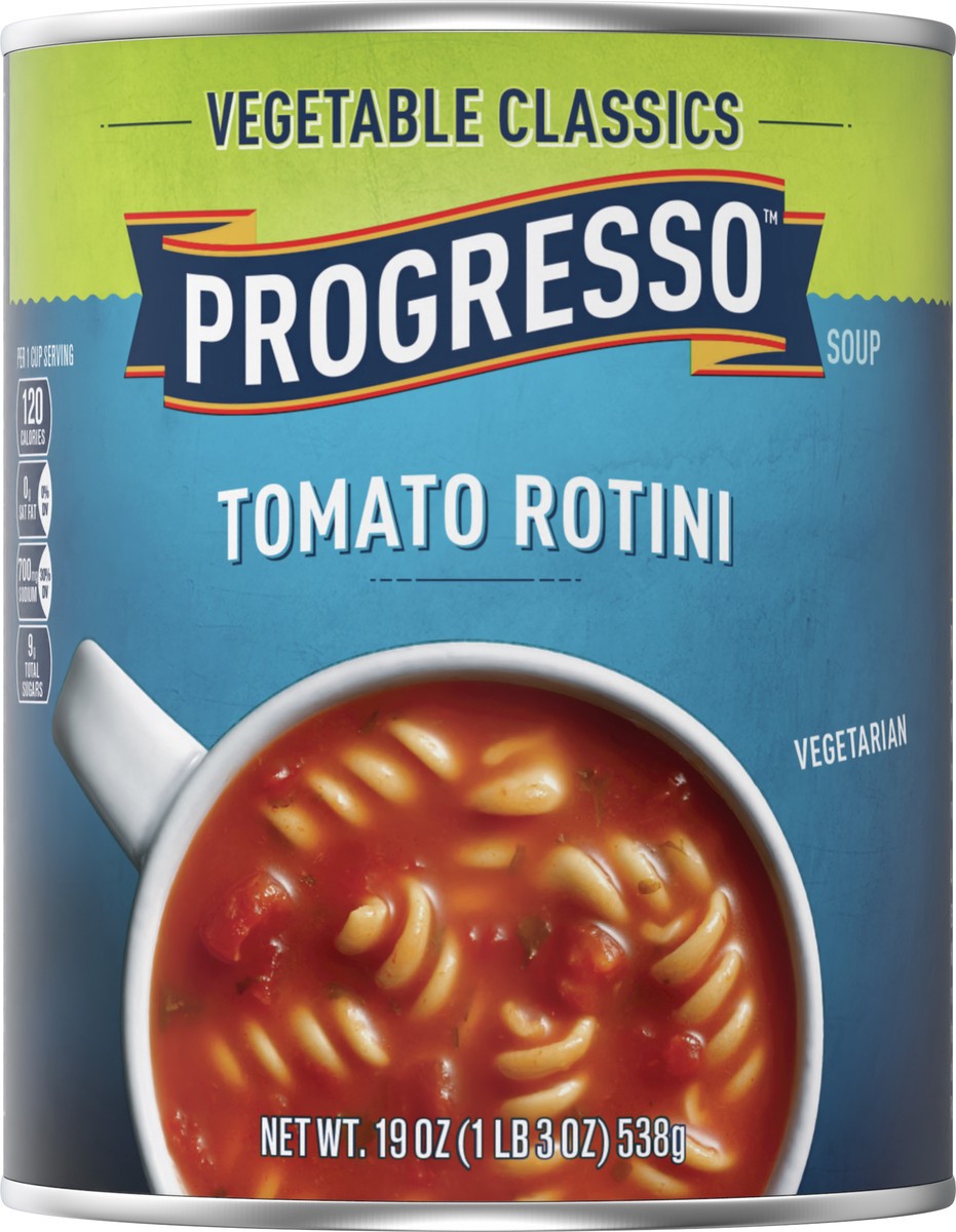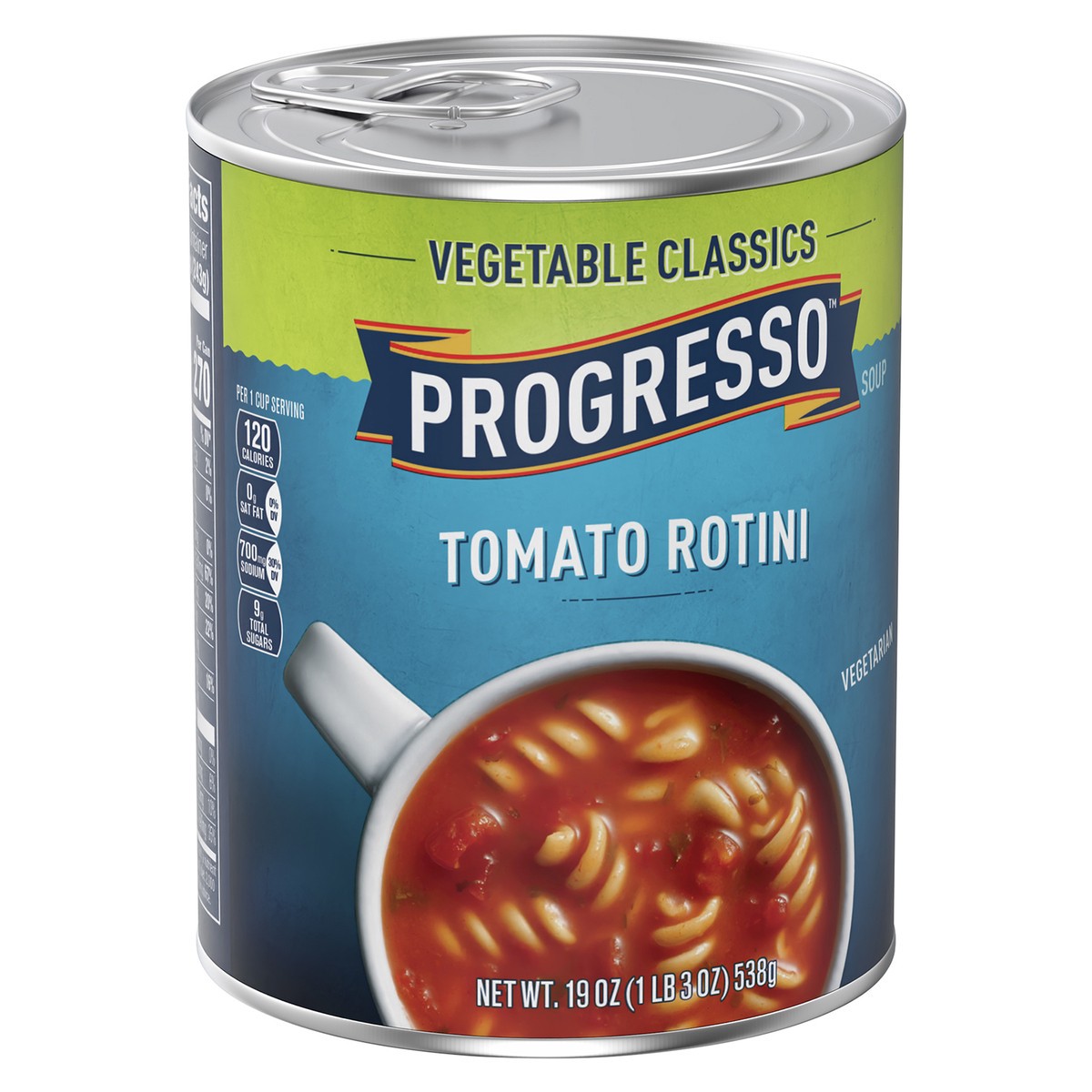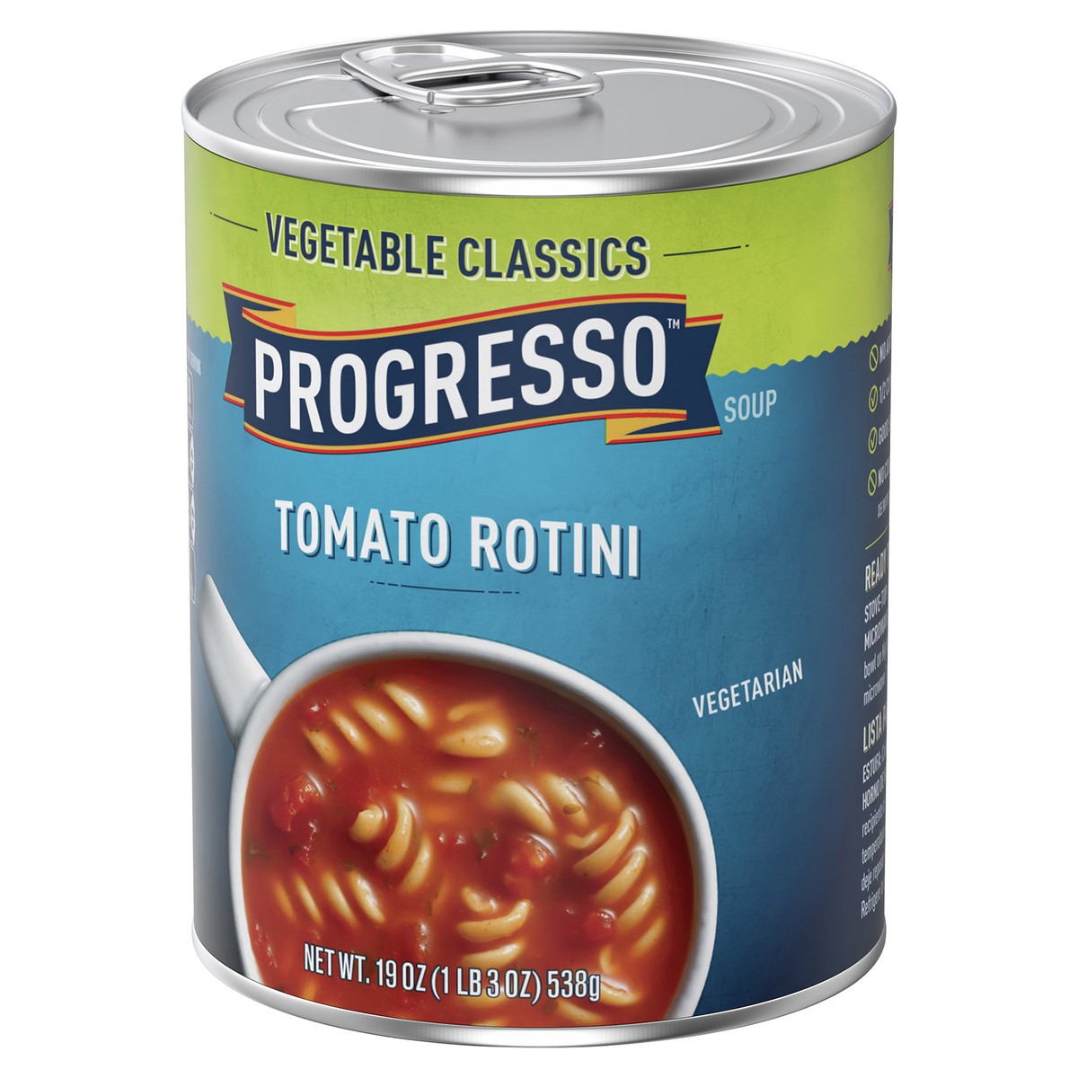 Take time to enjoy Progresso Vegetable Classic Tomato Rotini, a delicious classic vegetarian canned soup made with curly rotini pasta in a tomato base brimming with chunky, tasty tomato bits. Progress…
