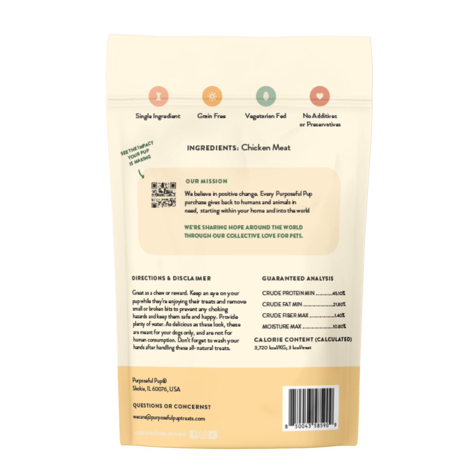 Purposeful Pup® Chicken Bites are made with one simple ingredientchickenand nothing you dont want. These high-value, bite-sized treats are perfect for training, rewarding, or adding a lean protein boo…