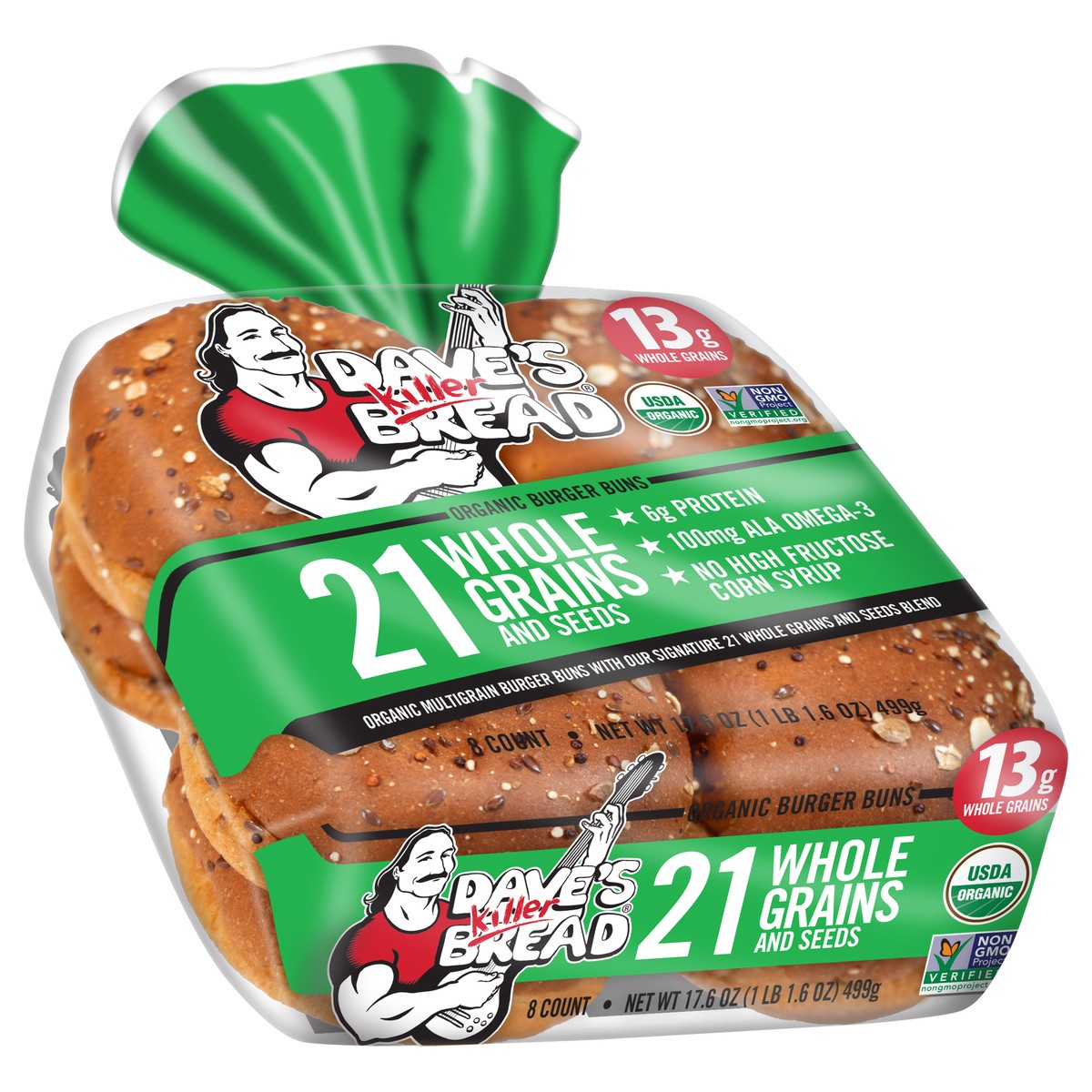 Dave's Killer Bread 21 Whole Grains & Seeds Burger Buns are USDA organic hamburger buns with subtle sweetness and hearty texture sure to amp up your next cookout. These buns feature our signature 21 W…