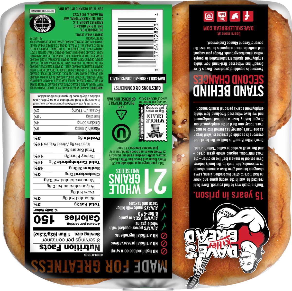 Daves Killer Bread 21 Whole Grains & Seeds Burger Buns Organic Hamburger Buns - 8 Count
