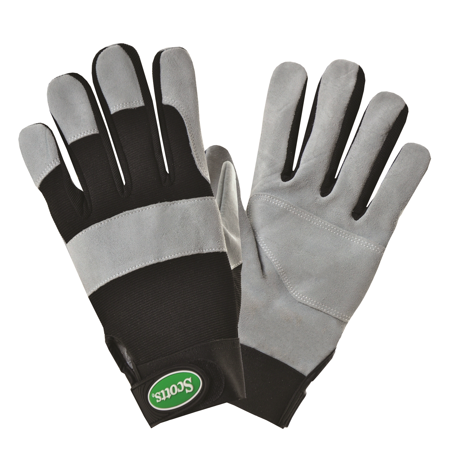 Flexible form-fitting stretch spandex back, Adjustable hook and loop spandex wrist for the perfect fit and feel, Durable split cowhide palm