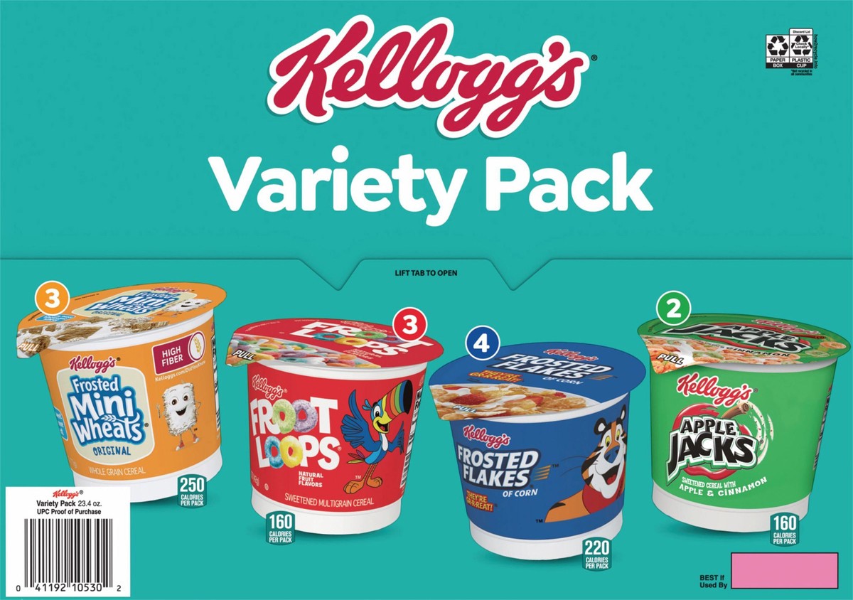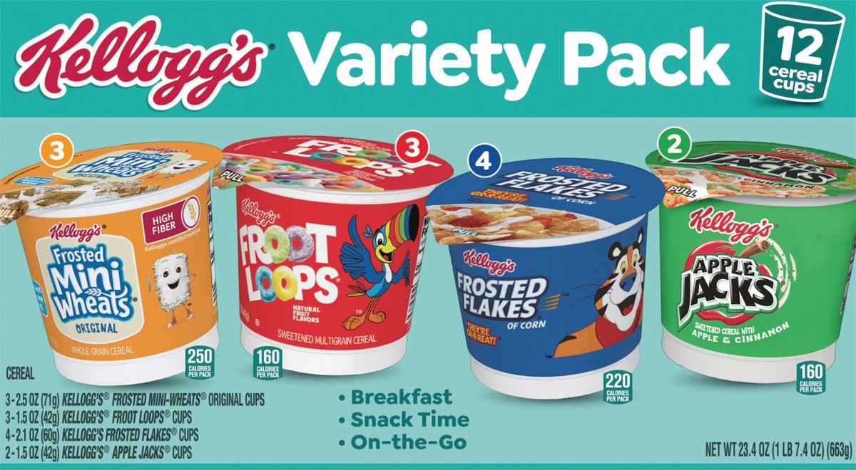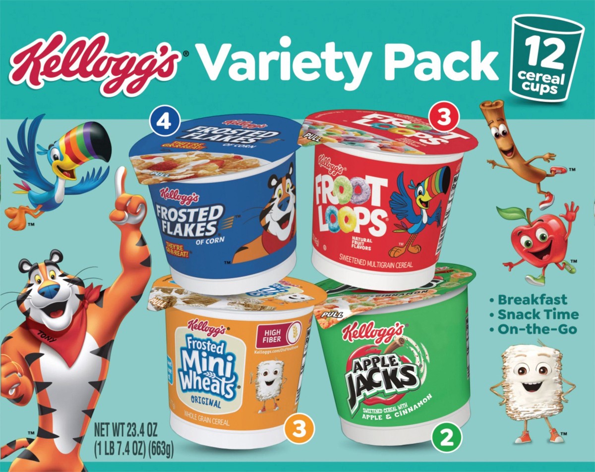 Kellogg''s Breakfast Cereal Cups, Kids Snacks, Family Breakfast, Variety Pack, 23.4oz Box, 12 Cups