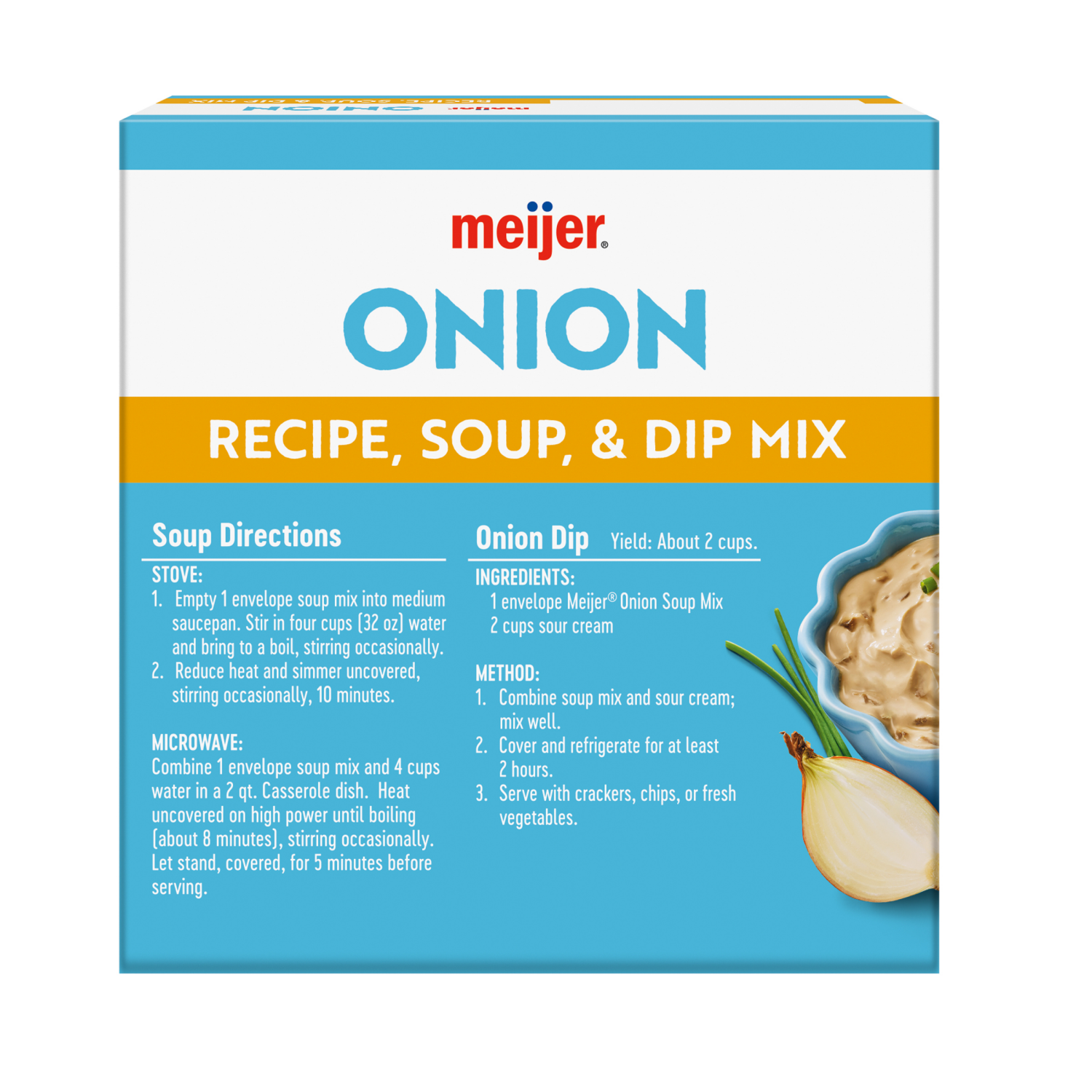 Unleash unlimited creativity in the kitchen with the versatile Meijer Onion Recipe, Soup & Dip Mix. This bold mix will turn every creation into a rich experience for your tastebuds. Turn it into a thi…