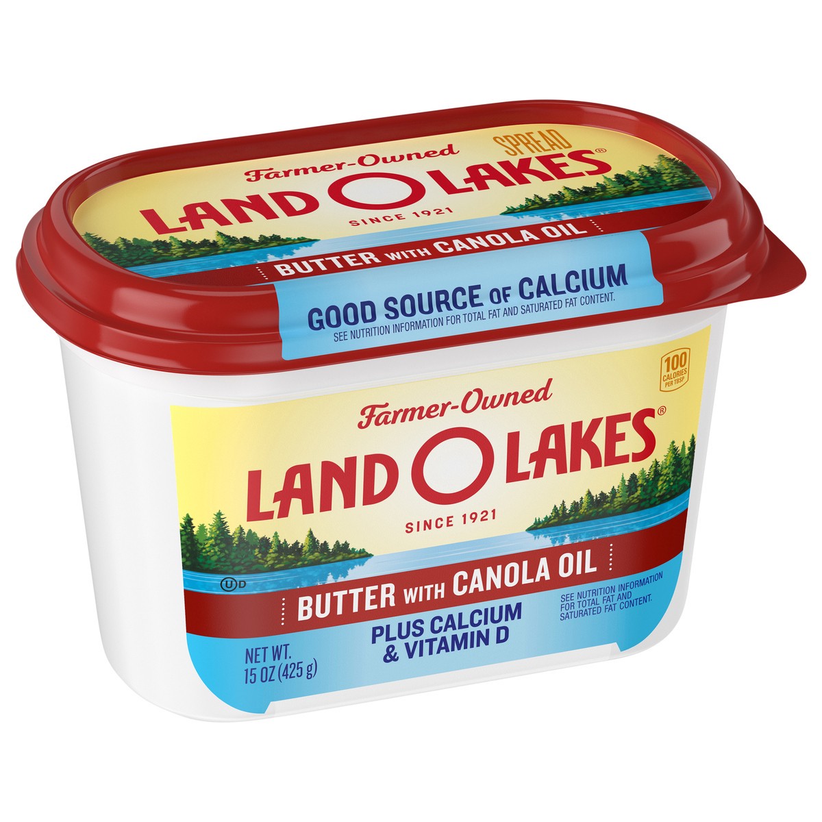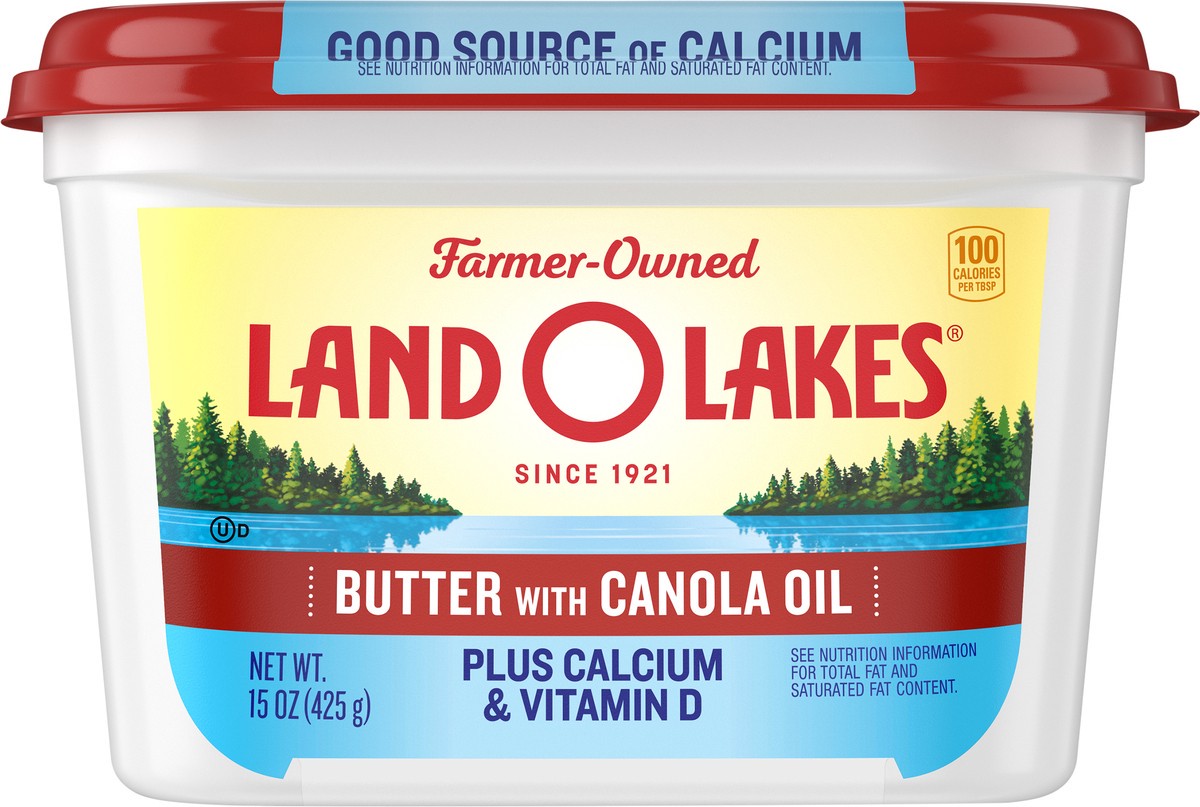 Land O Lakes Butter with Canola Oil Plus Calcium and Vitamin D gives you the fresh butter taste you love while also being a good source of calcium and an excellent source of vitamin D. See Nutrition I…