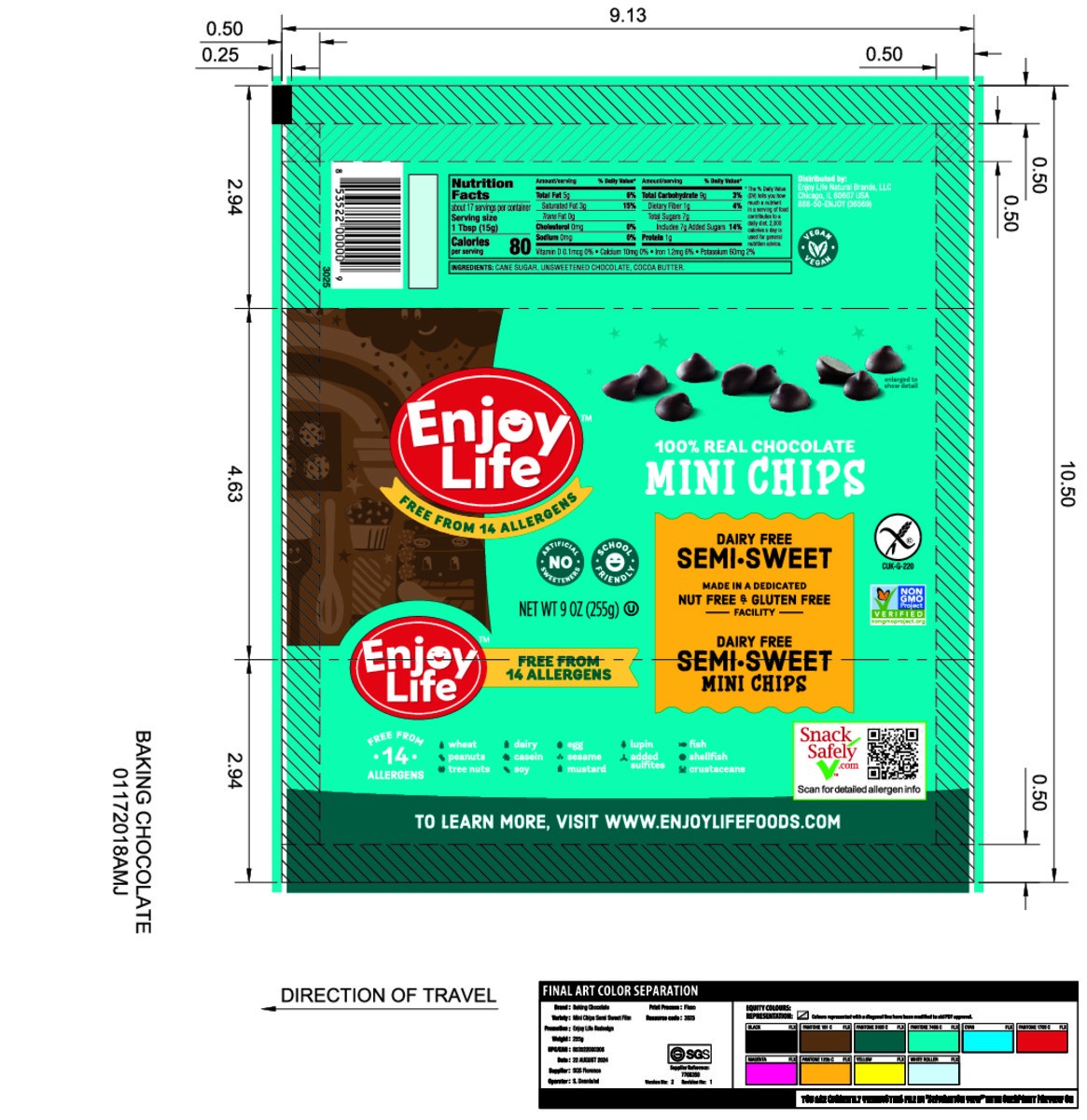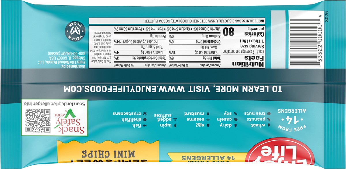 Enjoy Life Semi-Sweet Mini Chocolate Chips the perfect worry-free vegan chocolate chips for baking delicious school safe snacks. Certified gluten-free and Non-GMO Project Verified, vegan and kosher, t…