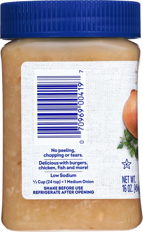 New. Est 1949. No peeling, chopping or tears. 1/2 cup (24 tsp) = 1 medium onion.