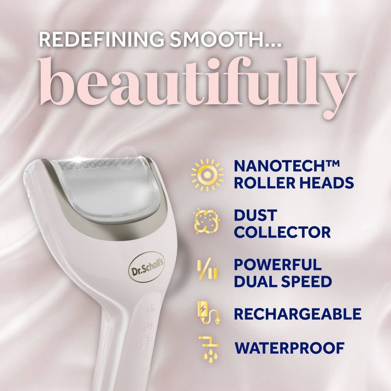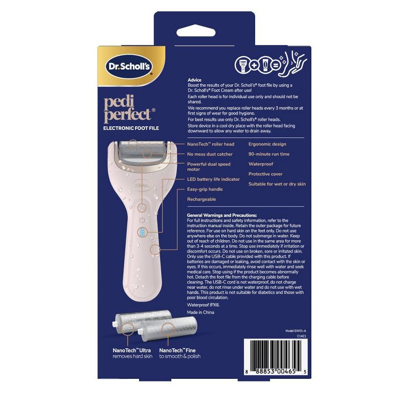 Experience salon-style smoothness at home with Dr. Scholl's Pedi Perfect Electronic Foot File. This waterproof, rechargeable device gently buffs away hard, rough, and dry skin to reveal softer, more b…