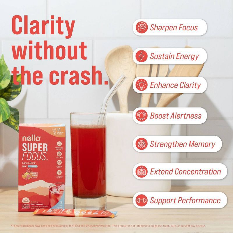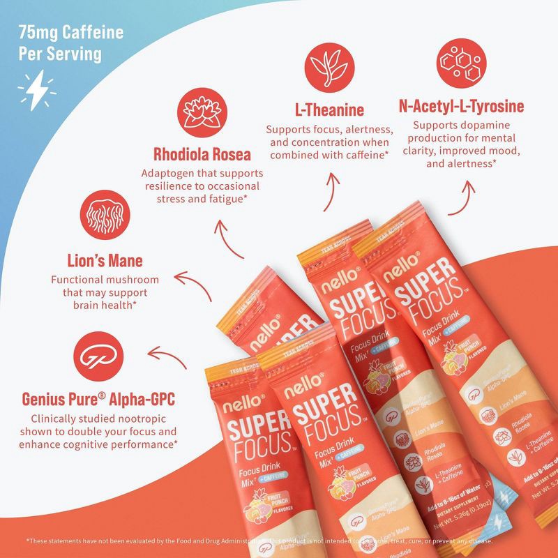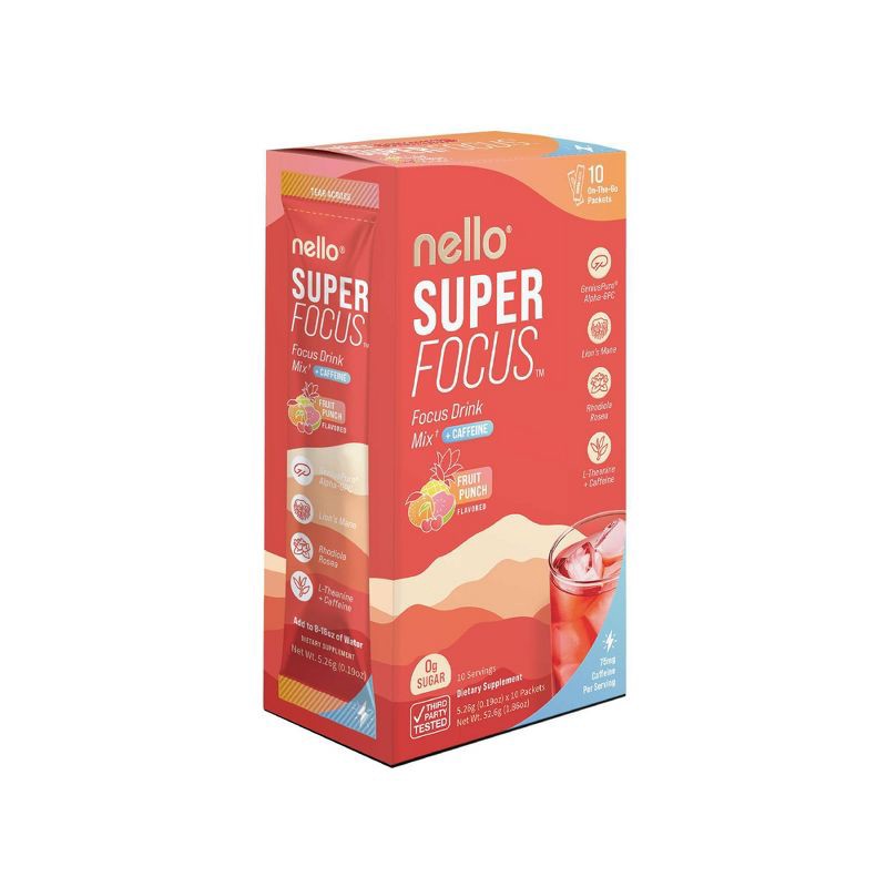 Nello Superfocus + Caffeine Drink Mix Supplement Powder - Fruit Punch - 10ct: Dietary Supplement, 10 Pack