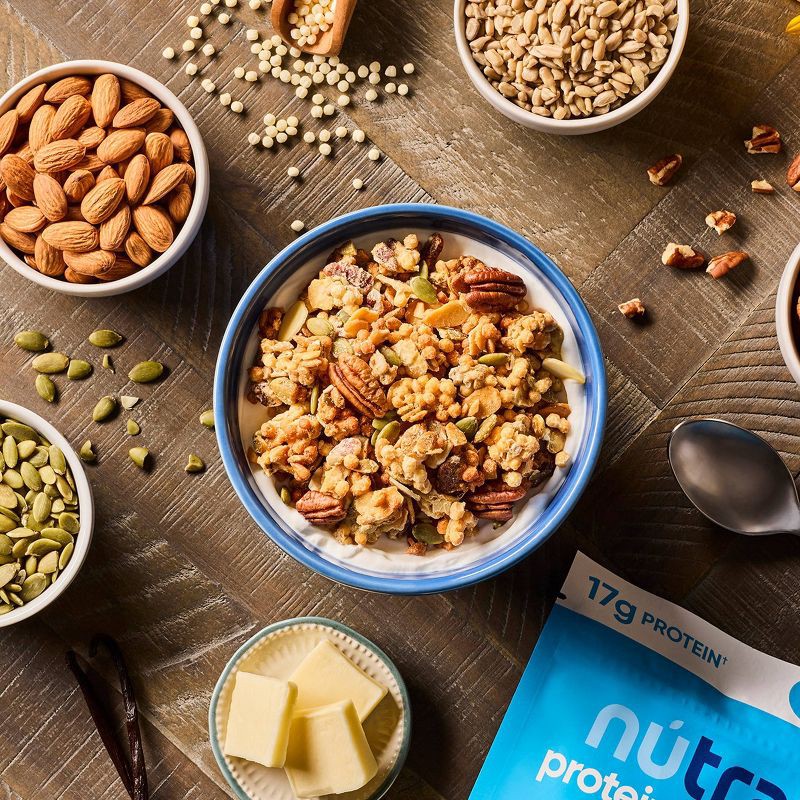- Sweet & Crunchy Protein Granola, with 17g protein per 2/3 cup serving