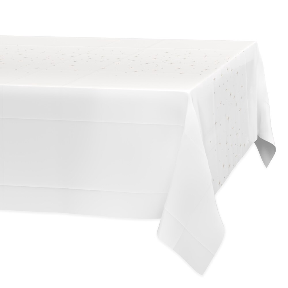 Turn any party into a sparkling, star-studded affair with this 54-inch-by-84-inch rectangular table cover. The white plastic cover features scattered gold dots and stars. Can be used both indoors and …