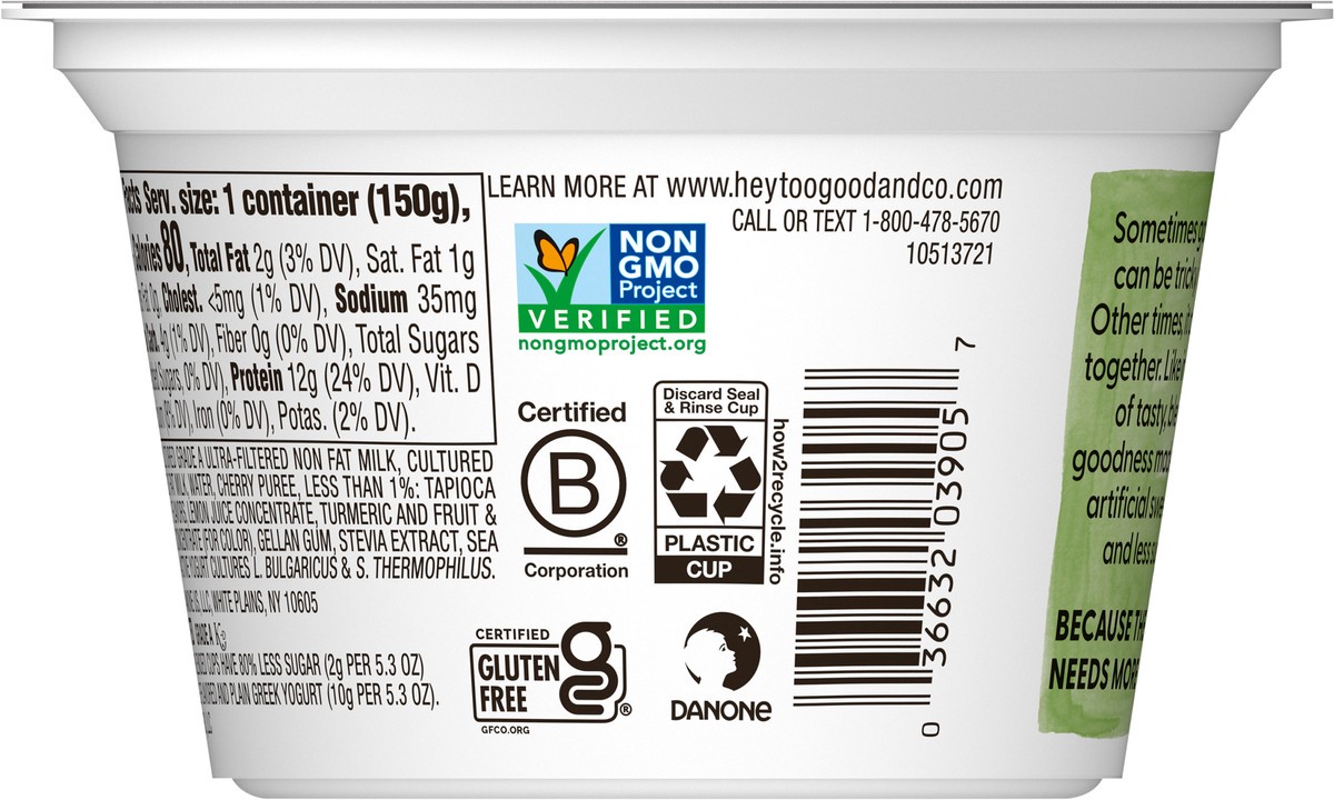 Too Good & Co. Cherry Low Fat Lower Sugar Gluten Free Greek Yogurt - 5.3 Oz