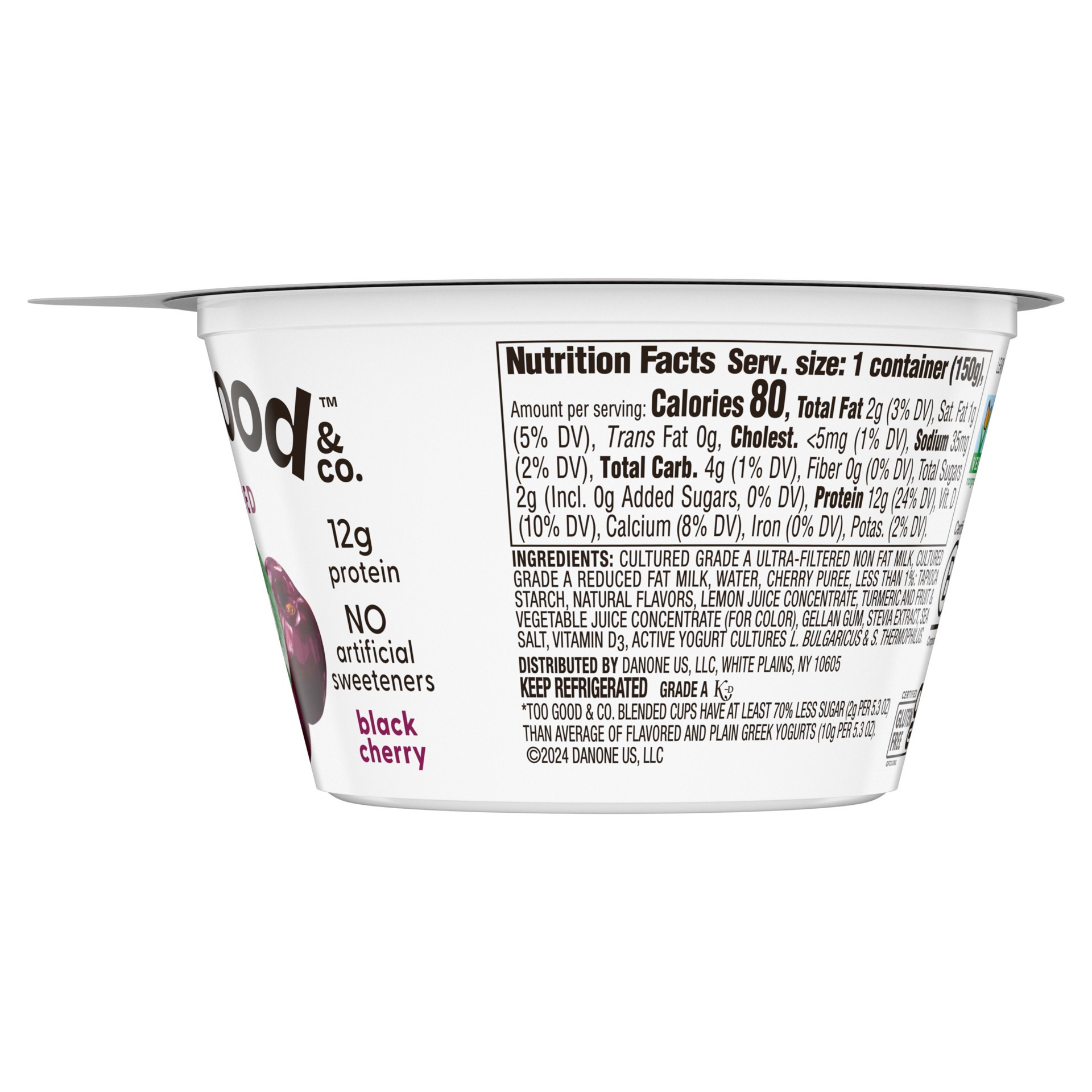 Too Good & Co. Cherry Low Fat Lower Sugar Gluten Free Greek Yogurt - 5.3 Oz
