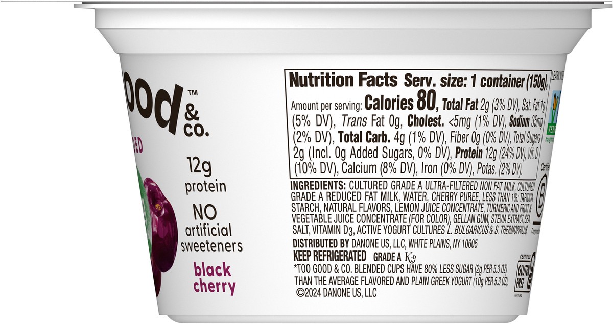 Too Good & Co. Cherry Low Fat Lower Sugar Gluten Free Greek Yogurt - 5.3 Oz