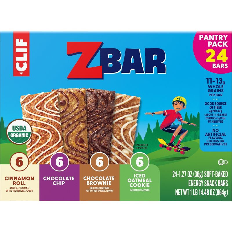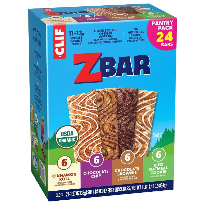 Zbar Cinnamon Roll, Chocolate Chip, Chocolate Brownie & Iced Oatmeal Cookie Granola Bar Variety Pack Organic - 30.48oz/24pk
