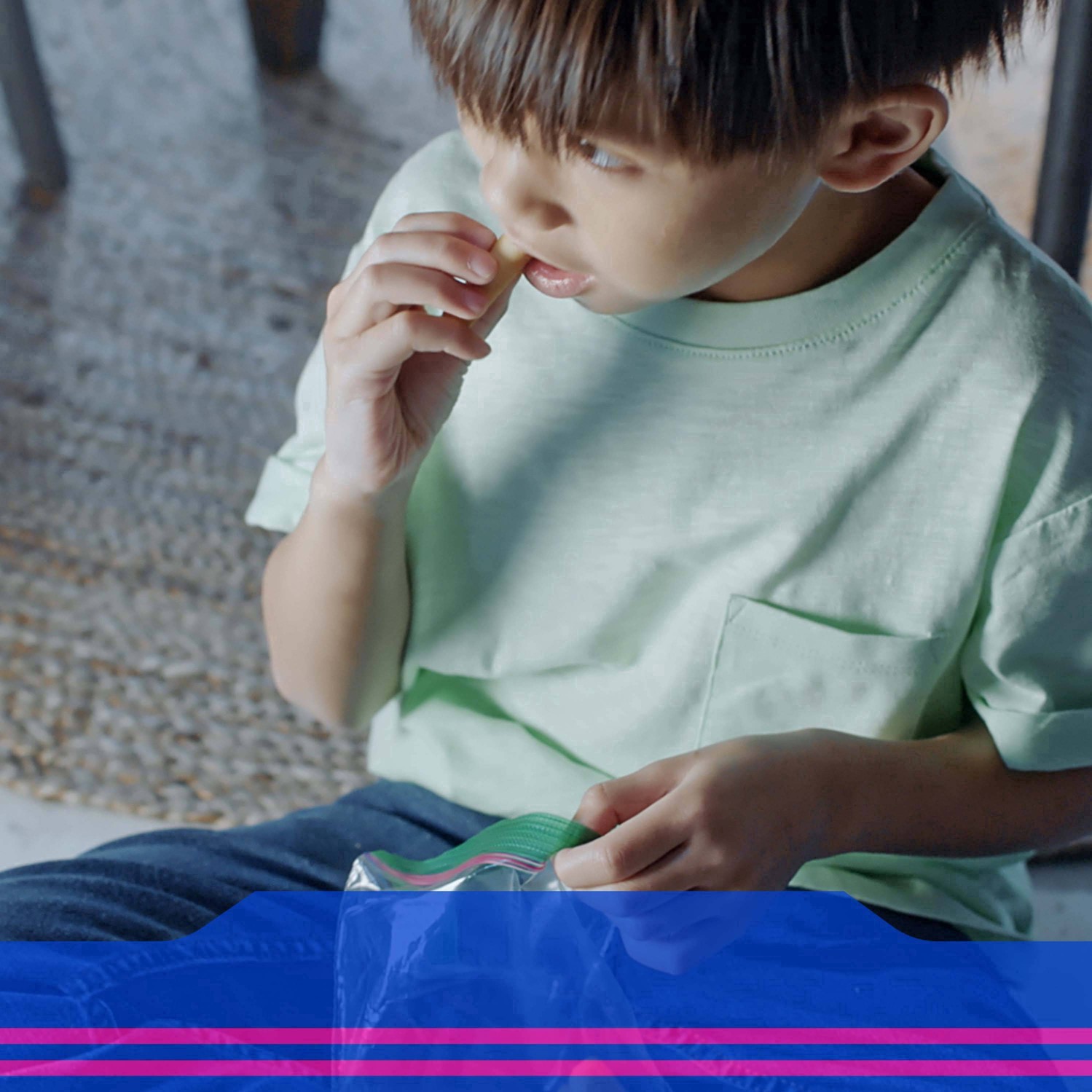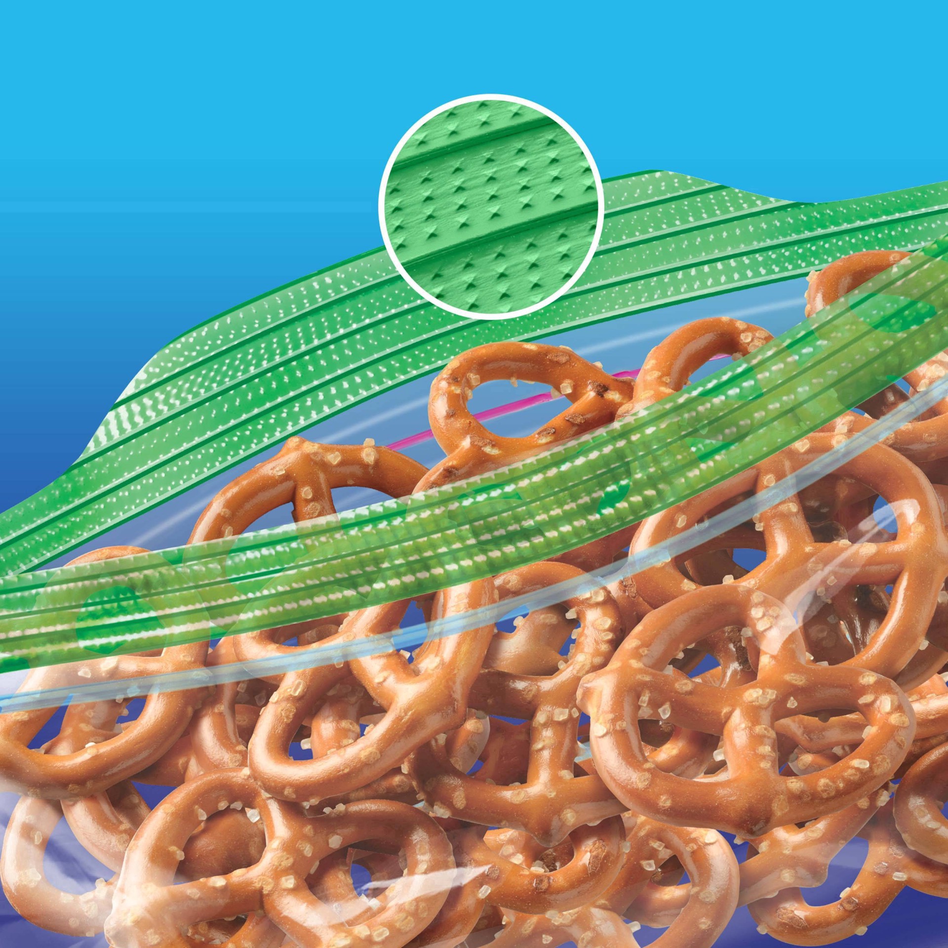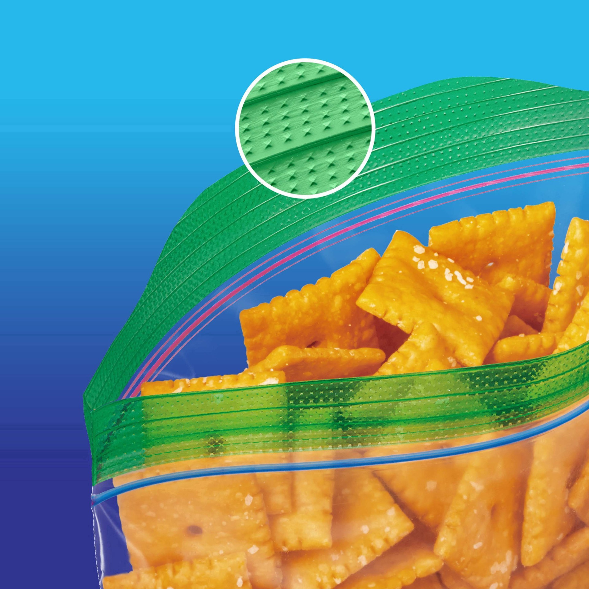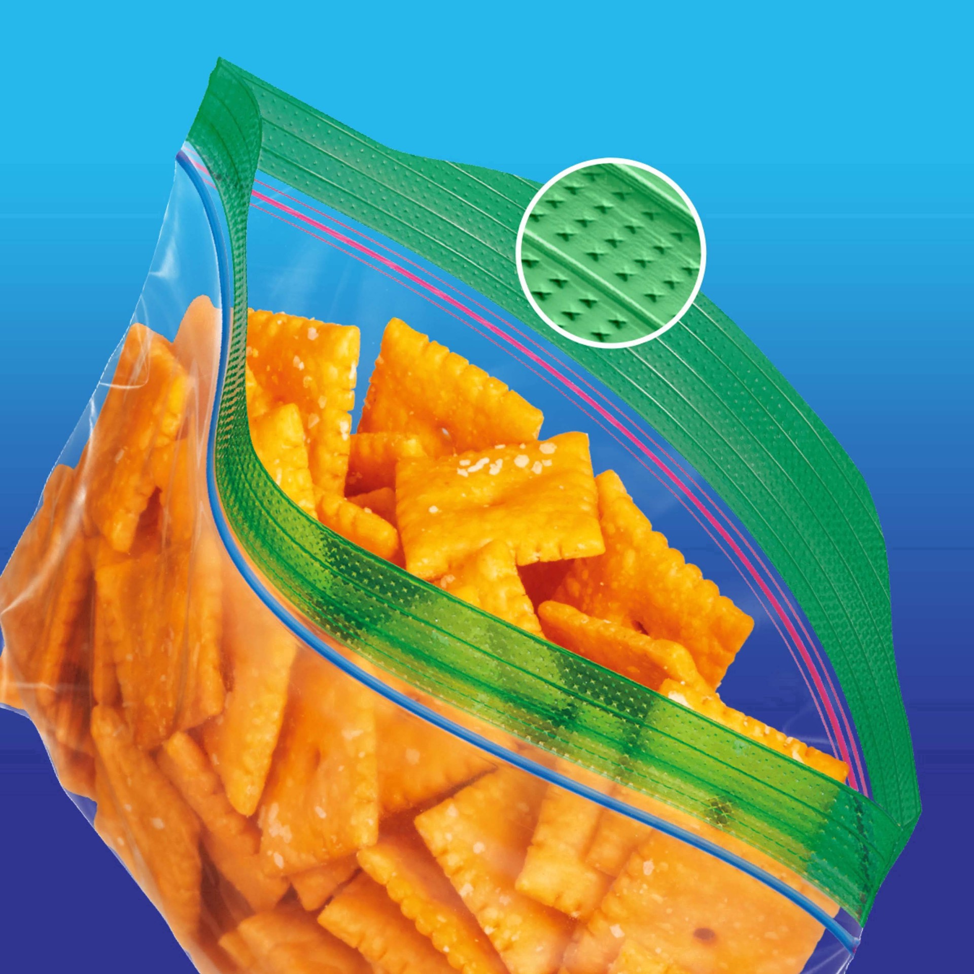 Ziploc Snack Bags have the EasyGuide™ Texture – a game changer for busy mornings and hungry snackers. This textured grip along the zipper guides your fingers, making it super easy to seal the small ba…