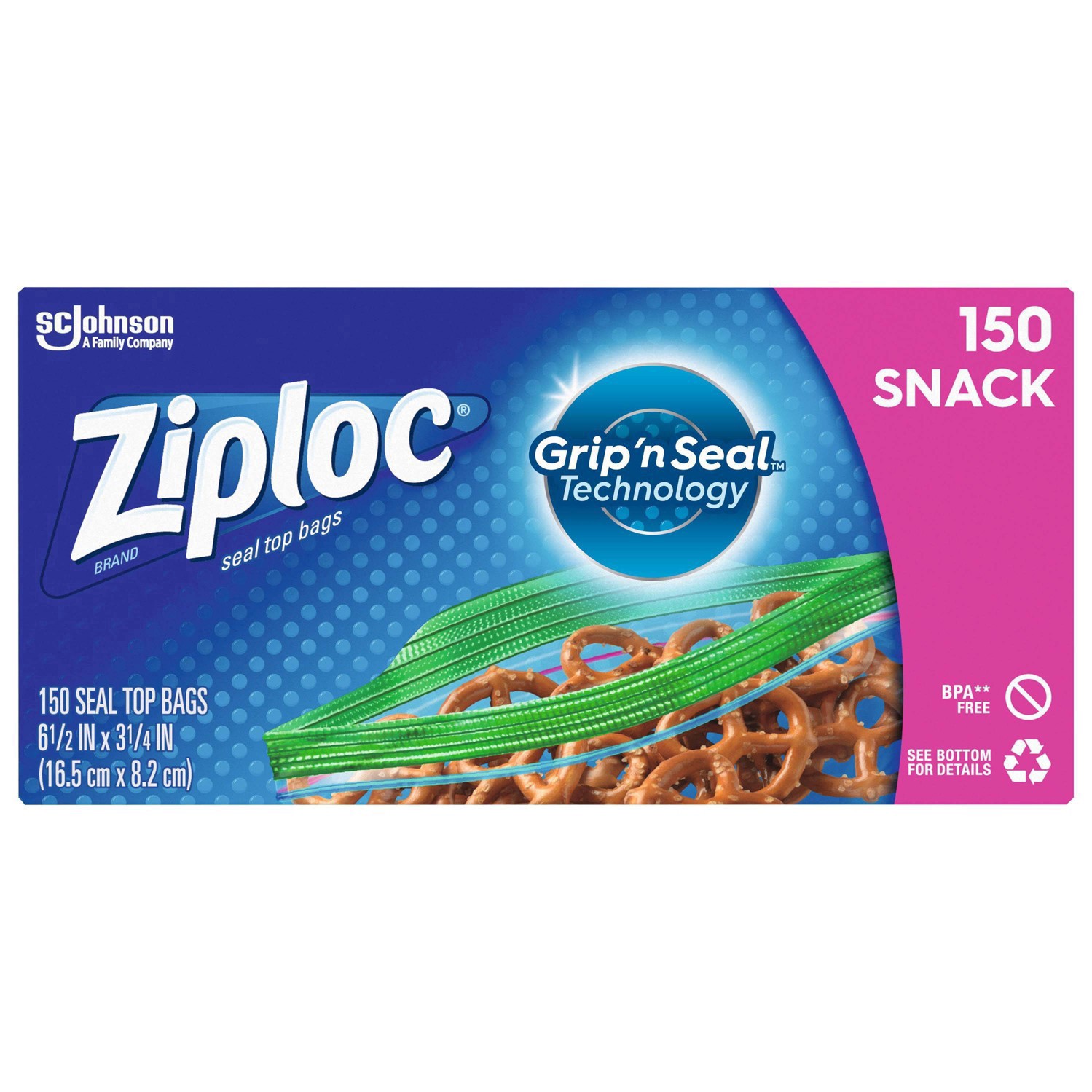 Ziploc Brand Snack Bags with EasyGuide™ Texture, Grip ’n Seal Technology™, 150 count