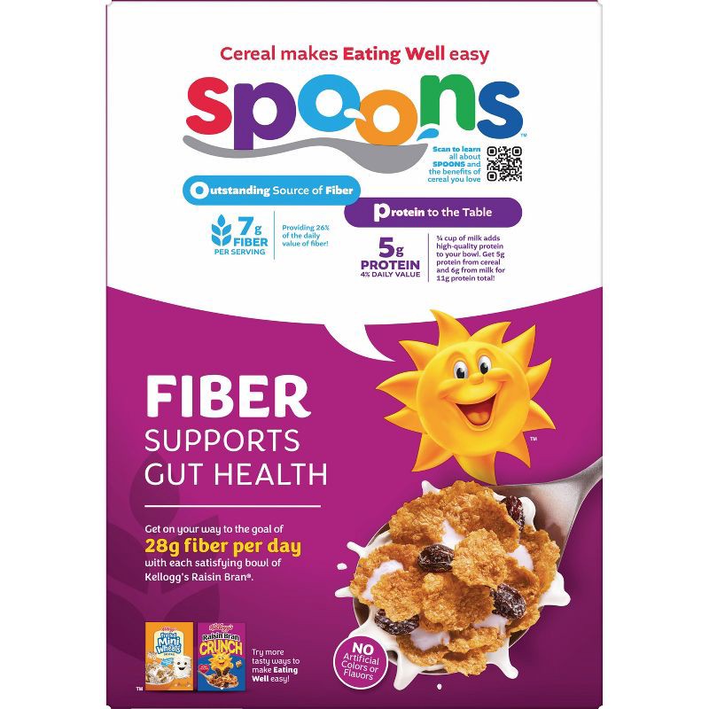 Wake up with Sunny and the delicious taste of Kellogg's Raisin Bran, a deliciously crafted breakfast cereal that helps bring energy to start your day. This crunchy cereal is made with toasted whole gr…