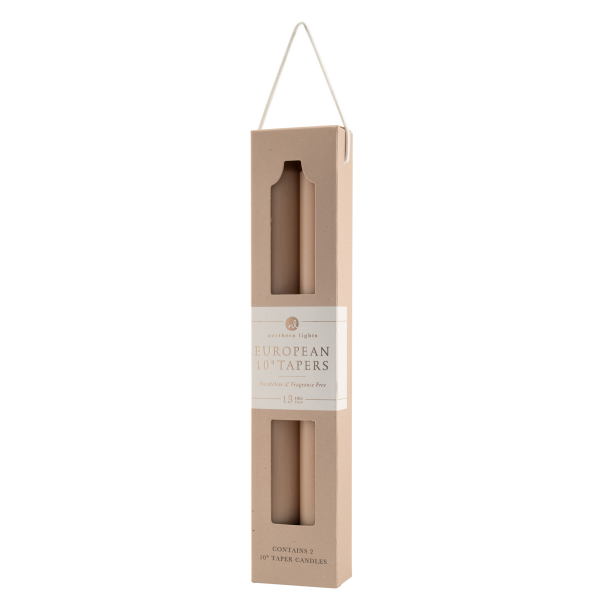 Our distinctive 10 taper candles are 1 inch wide. They are smokeless and dripless and come with a tapered bottom to fit any standard sized taper holder.