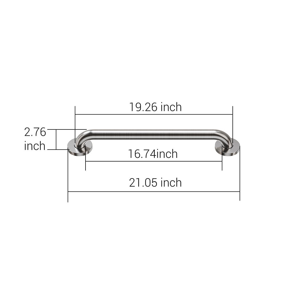 1.25-in Diameter. 18-in SS304 Grab Bar, concealed screw. Brushed Finish. ADA COMPLIANT. 1.5 inch wall clearance, Loading Capcity: 500lbs. Anti-Rust. Includes hardware for installation.