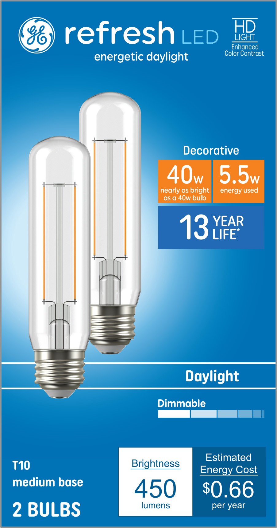 GE Refresh 40 -Watt EQ T10 Daylight Medium screw base E26 Dimmable LED Decorative Light Bulb 2 -Pack