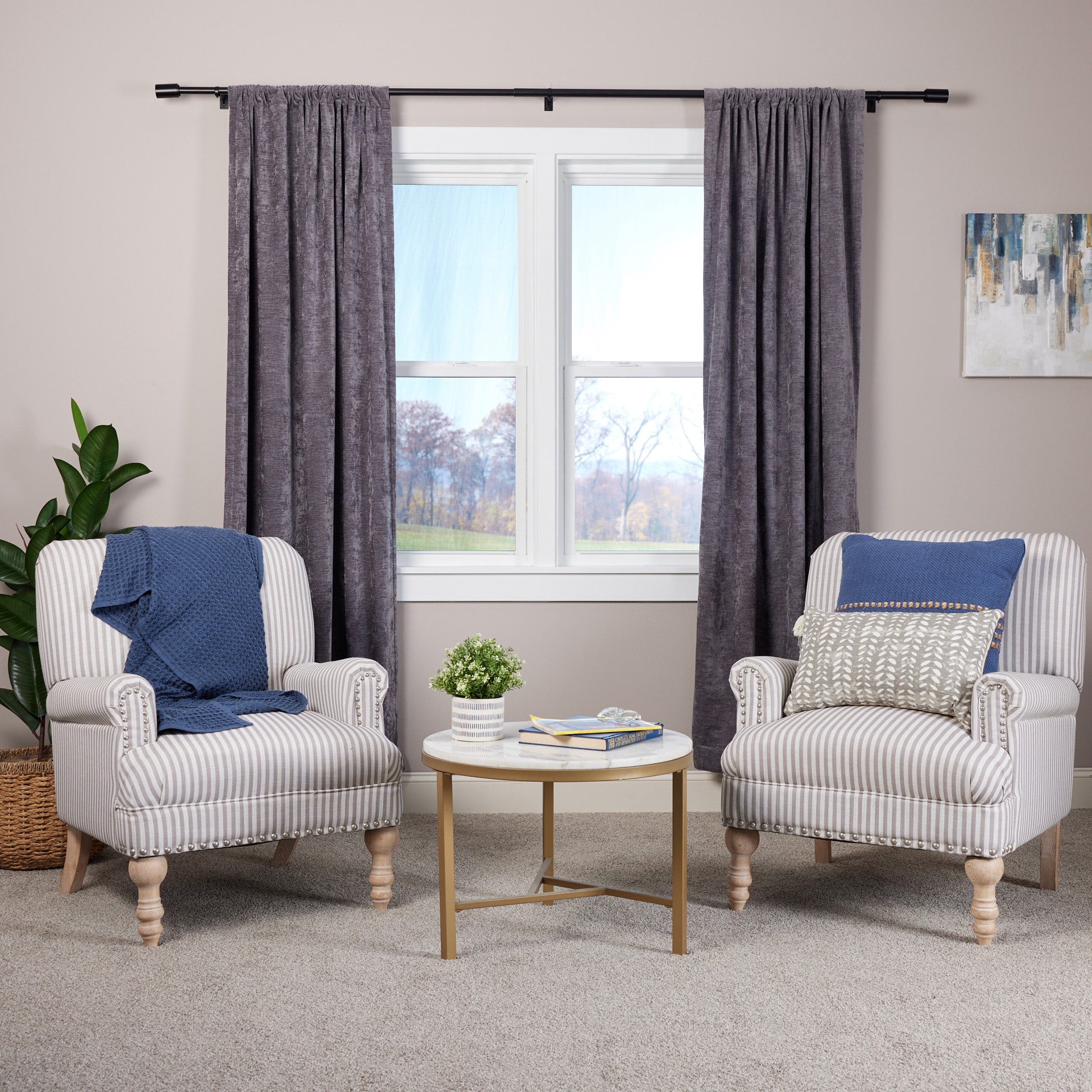 Origin 21 36-in to 72-in Matte Black Iron Single Curtain Rod with Finials