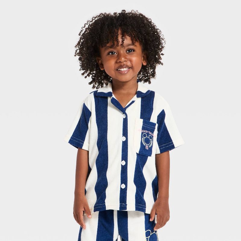This 2-Piece Disney Mickey Mouse Striped Short Sleeve Button-Down Shirt & Shorts Set is a cute and comfy pick for your little Disney fan. Made from polyester terry fabric for a soft feel, this outfit …