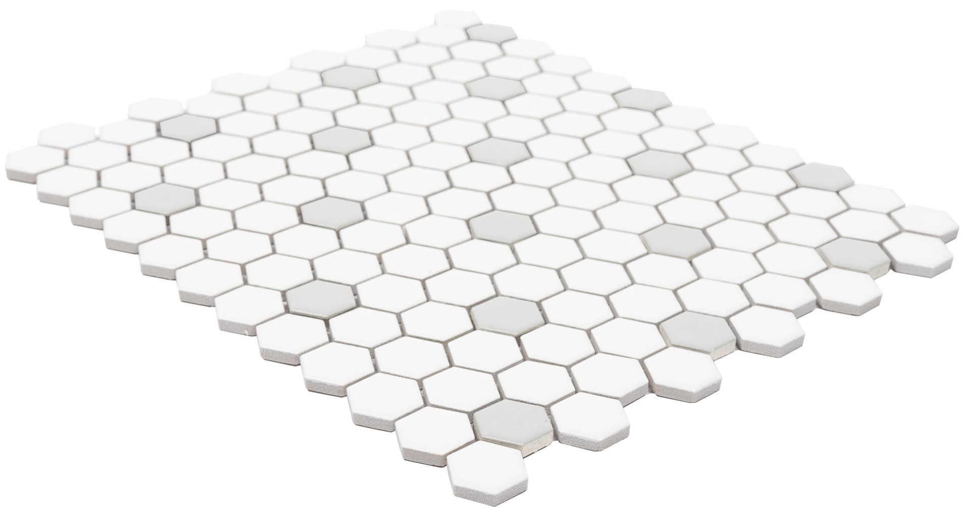 Satori Hudson Brilliant White and Gray 10-in x 12-in Matte Porcelain Hexagon Mosaic Floor and Wall Tile ( 0.82-sq ft Piece )