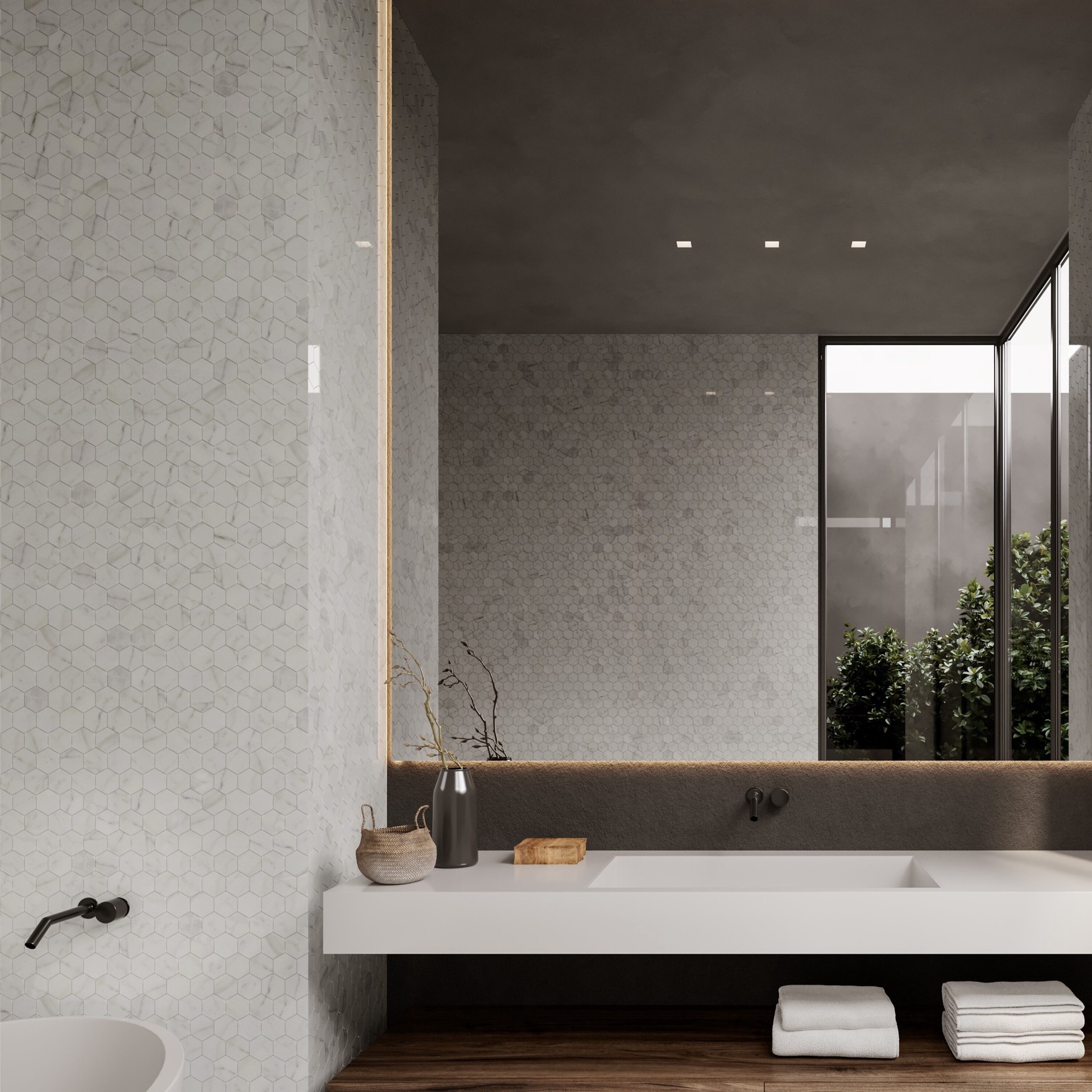 Satori Statuario 12-in x 12-in Polished Porcelain Hexagon Mosaic Floor and Wall Tile ( 0.96-sq ft Piece )