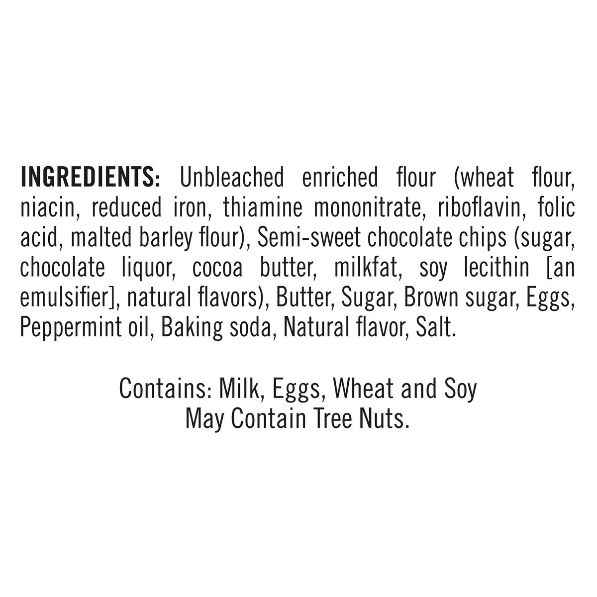 INGREDIENTS: Unbleached enriched flour (wheat flour, niacin, reduced iron, thiamine mononitrate, riboflavin, folic acid, malted barley flour), Semi-sweet chocolate chips (sugar, chocolate liquor, coco…