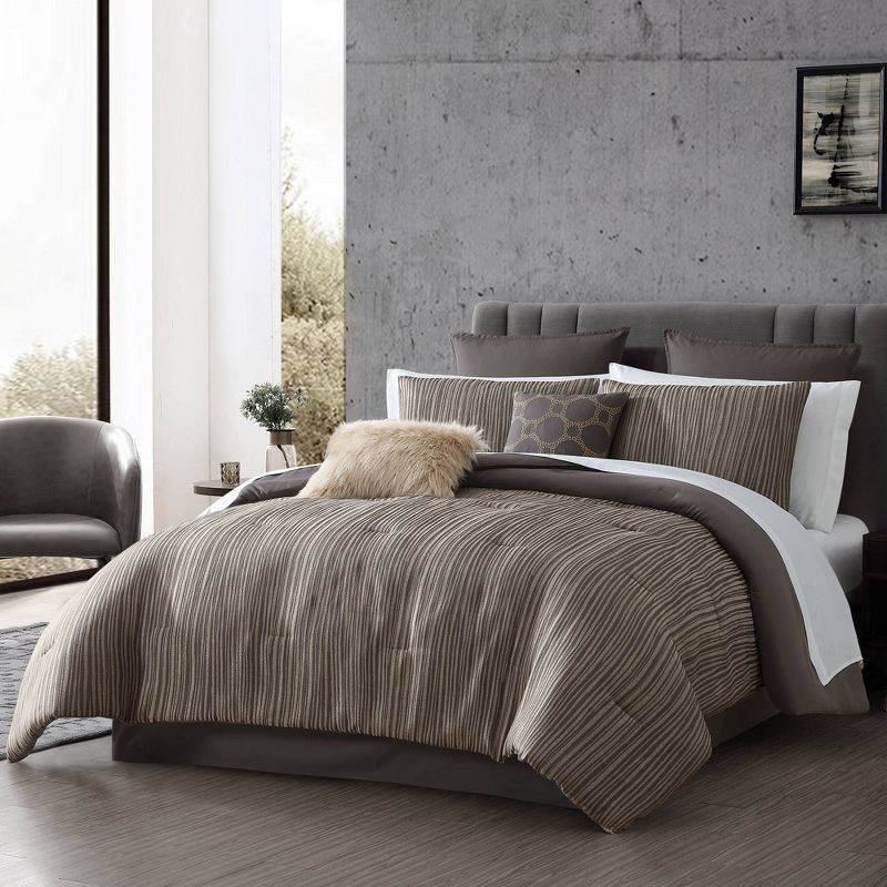 Hallmart Collectibles 12pc King Nylah Jacquard Bedding Set Brown
