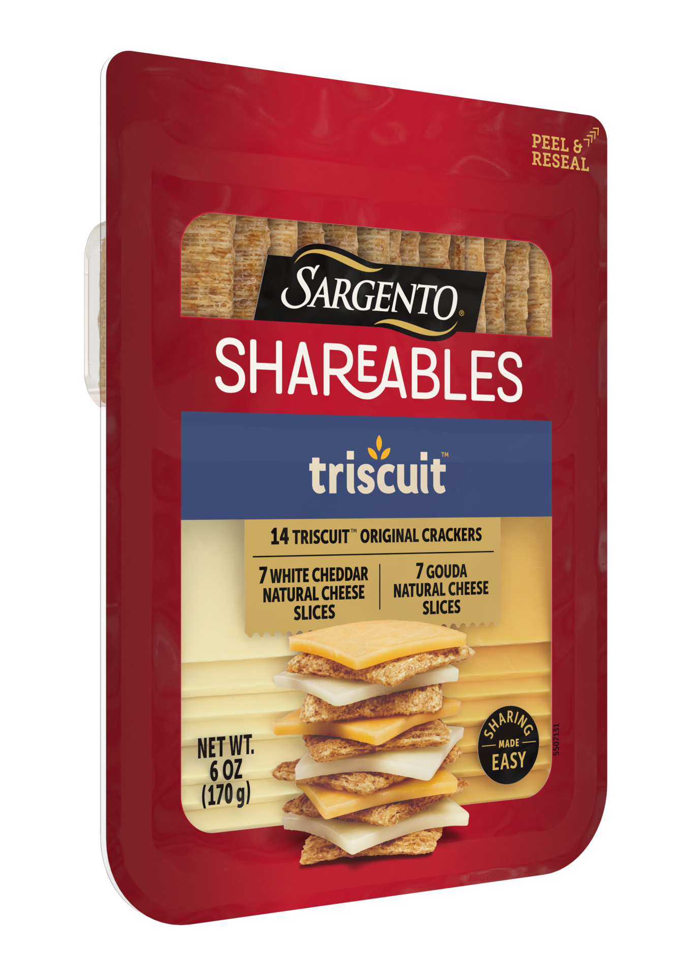 Introducing Sargento Shareables with 14 Triscuit Original Crackers, 7 White Cheddar Natural Cheese Slices, & 7 Gouda Natural Cheese Slices, the ideal snack pack for sharing! This delicious duo combine…