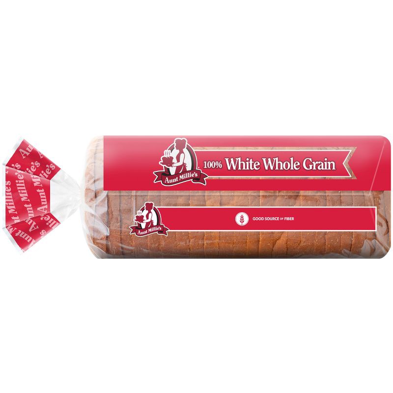Aunt Millie's 100% White Whole Grain Bread is a rich and hearty whole grain bread with a soft, smooth texture that kids will love. It's also a good source of fiber making it a delicious way to add who…