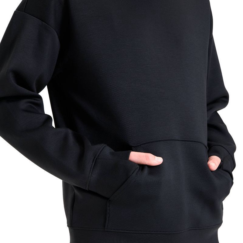 Why we're ALL IN:Long-sleeve pullover sweatshirt is designed in a solid hue for versatile wear. Features an attached hood and long sleeves with thumbhole cuffs. Made with lightweight recycled polyeste…