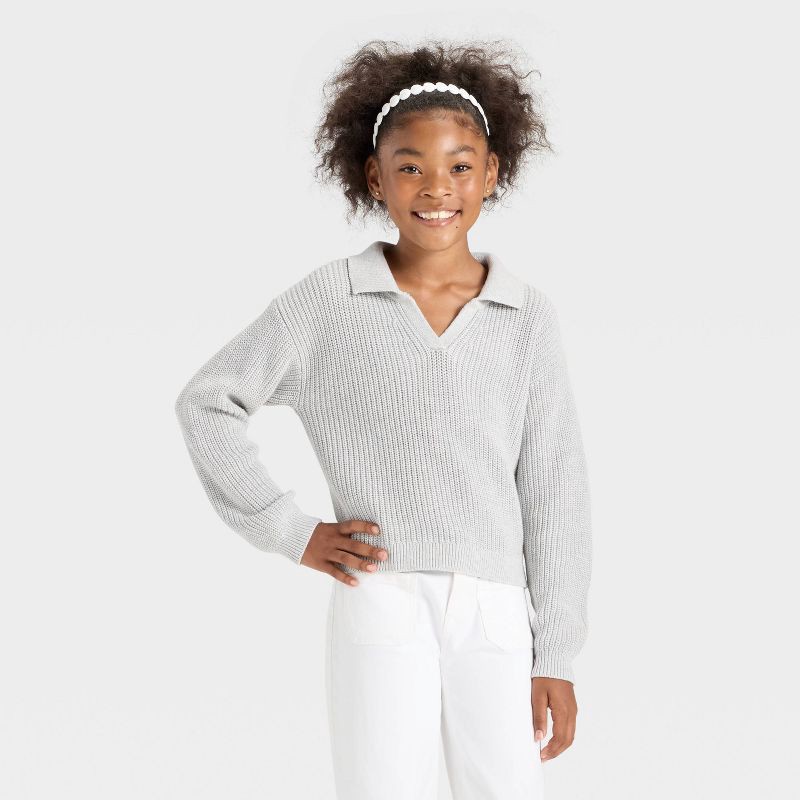 Girls' Collar Sweater - Cat & Jack™ Heather Gray XS
