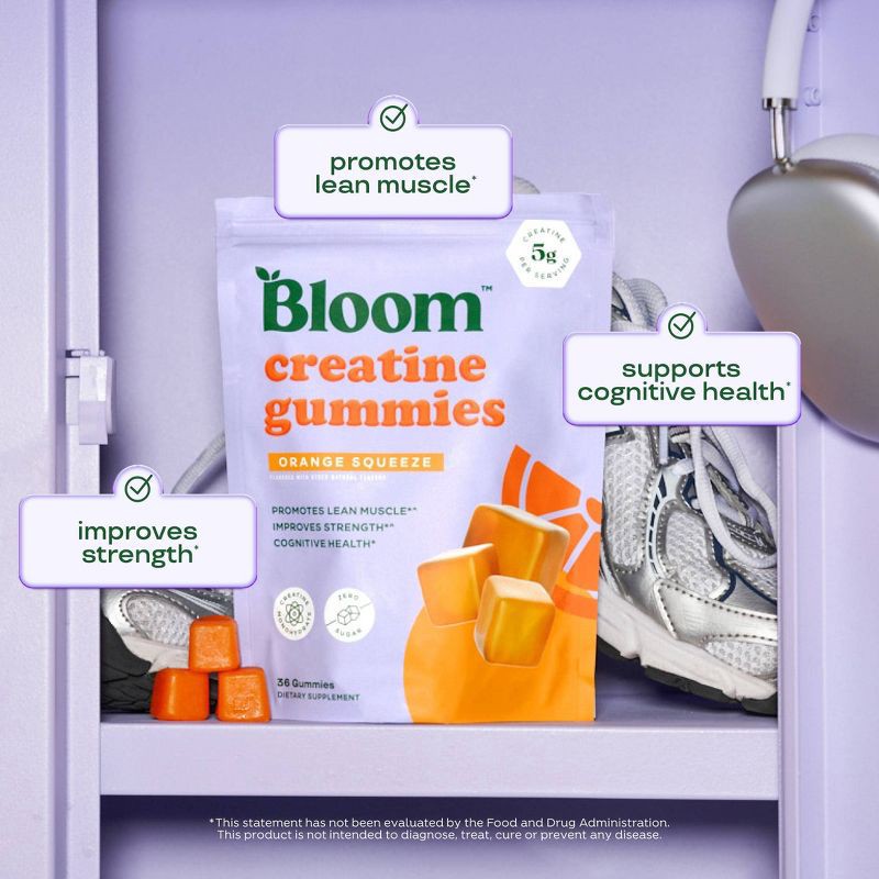 BLOOM NUTRITION Creatine Monohydrate Gummies - Orange Squeeze - 36ct/12 Servings: Dieting and Sports Supplement
