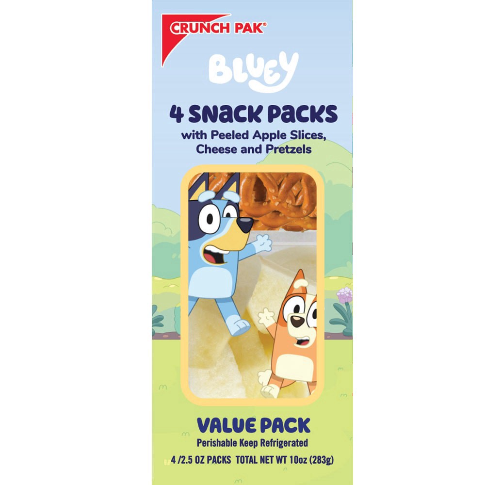 Bluey Medley with Peeled Sweet Apple Slices, Cheese, and Pretzels