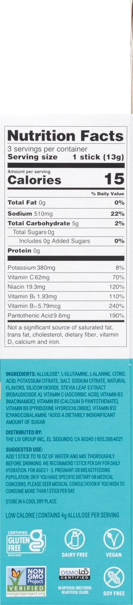 Allulose(a), L-Glutamine, L-Alanine, Citric Acid, Potassium Citrate, Salt, Sodium Citrate, Natural Flavors, Silicon Dioxide, Stevia Leaf Extract (Rebaudioside A), Vitamin C (Ascorbic Acid), Vitamin B3…