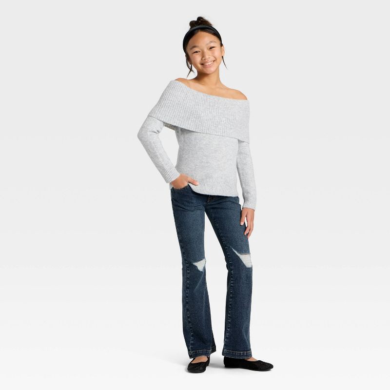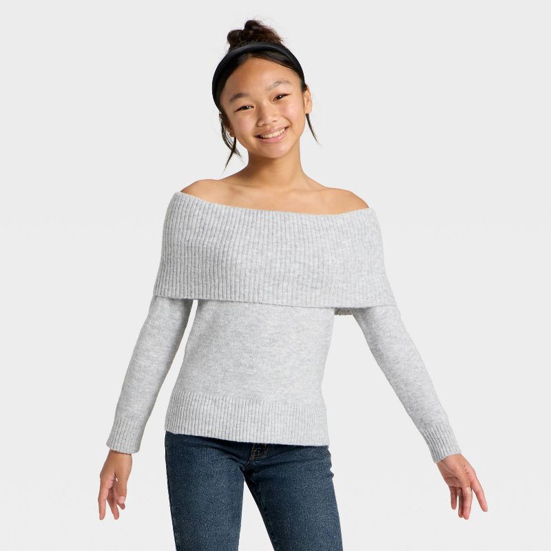 Girls' Off the Shoulder Pullover Sweater - art class™ Heather Gray S