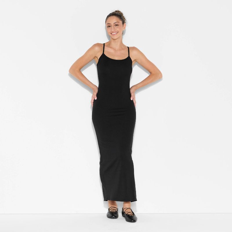Sleeveless bodycon dress from Wild Fable™ in a racerback style. Made of recycled polyester fabric with spandex with a back slit for comfortable wear and effortless movement. Cut to a maxi length with …