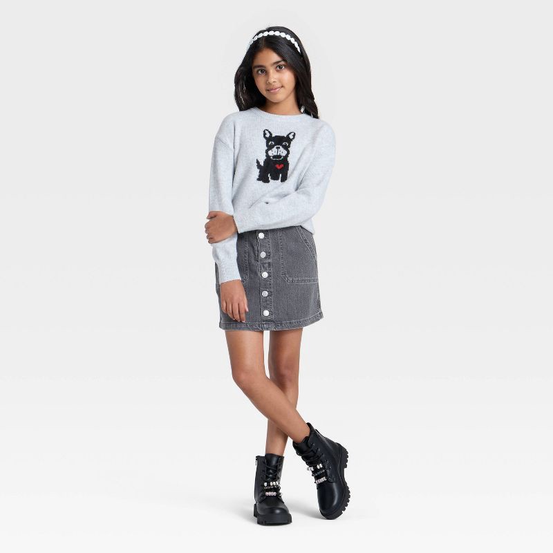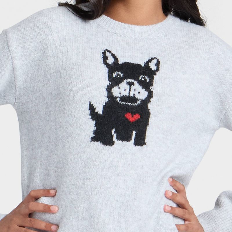 Girls' Dog Graphic Pullover Sweater - Cat & Jack™ Heather Gray L