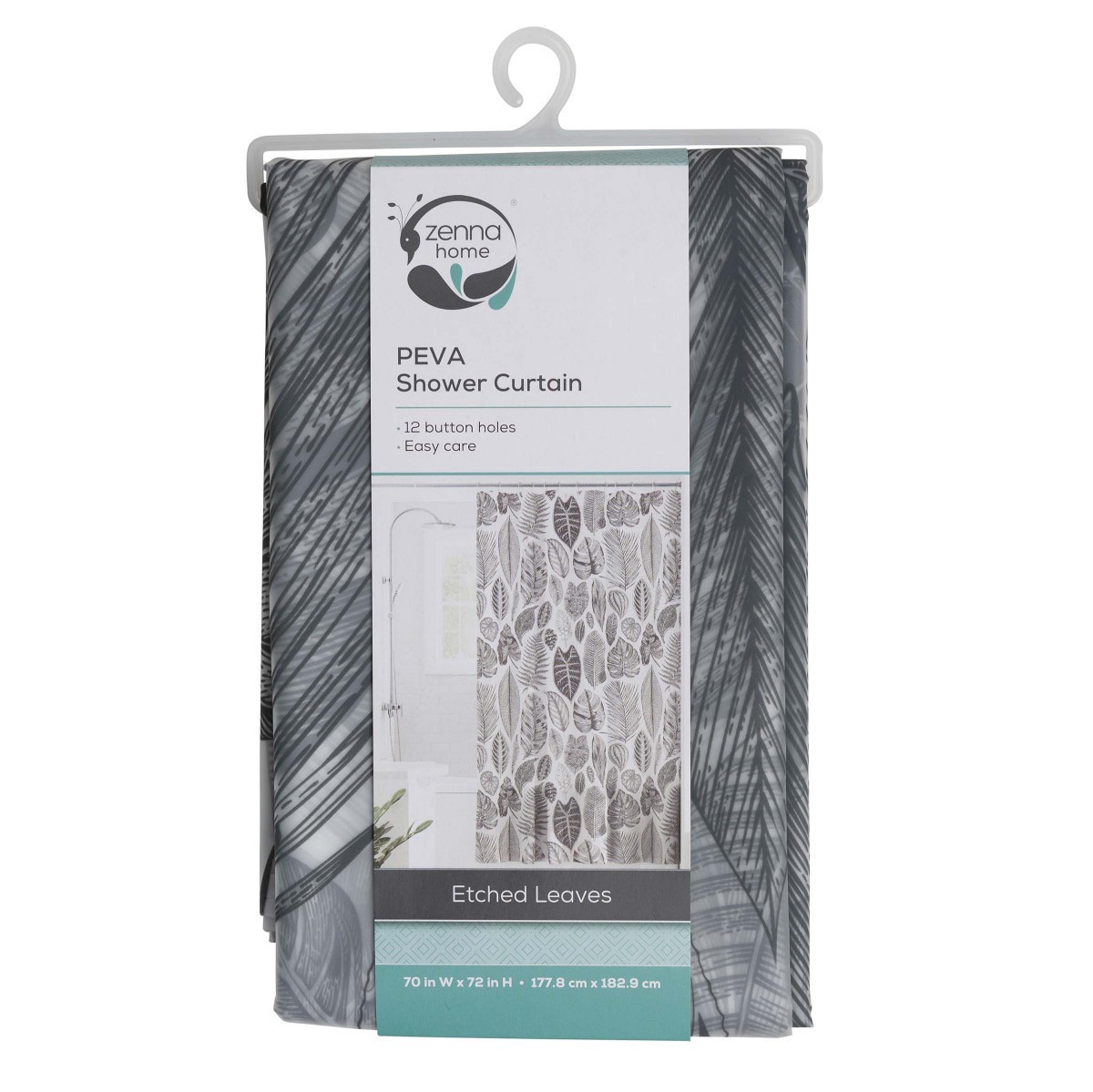 Tree leaves in varied shapes and sizes cover the Zenna Home Etched Leaves PEVA Shower Curtain, adding the calming comfort of the outdoors to your bath decor. With 12 button holes at the top, the curta…