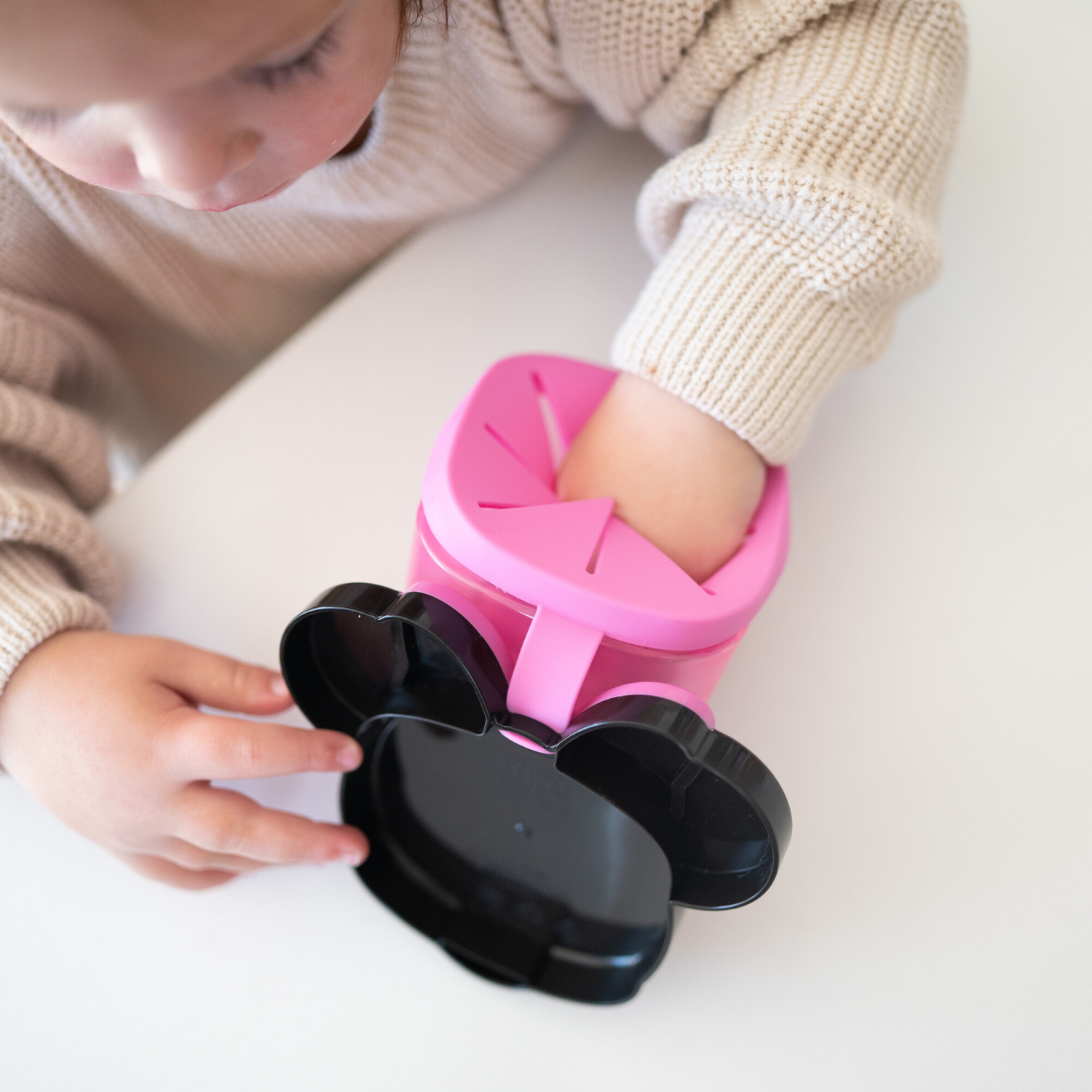 Minnie makes snack time more fun and keeps floors clean too! This spill-proof snack cup lets little ones enjoy tasty treats with their favorite mouse by their side. The soft flaps make it easy for sma…